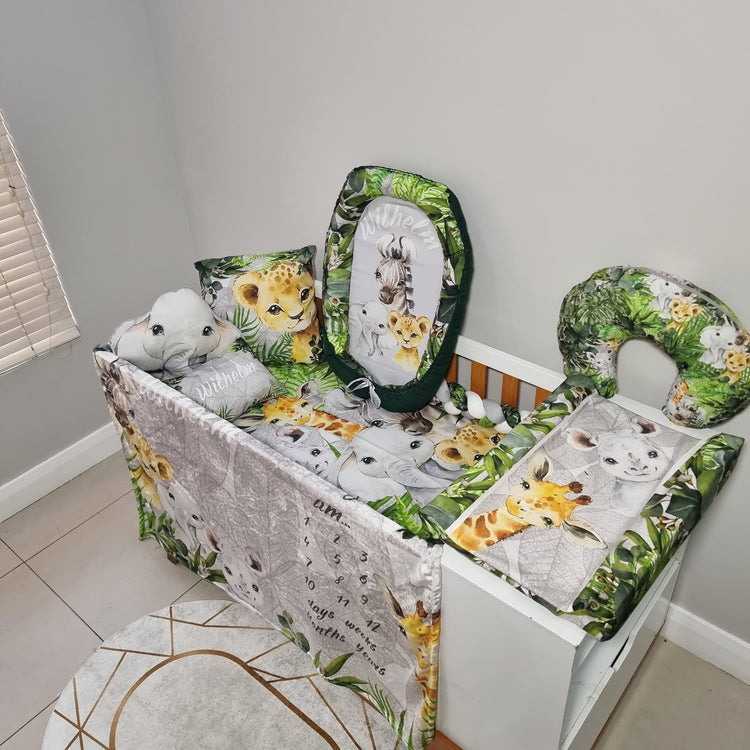 All seasons packages is our nifty original creation. These packages are super luxurious and like the name states can be used the year through out. The back of the duvet has luxurious, super fluffy and hypo-allergenic fleece. Your duvet inner stays removable. So in the winter, use with your inner in, for a super plush and warm duvet. Warmer seasons use without the inner, then it serves as a blanket. To make these packages more exclusive, it includes a printed fitted sheet and a printed bumper. Now your cot set and theme will stand out and will definitely be statement making. Our prices includes design and personalisation so it can be done in any theme and colors. We do send designs for your approval once your order is confirmed.