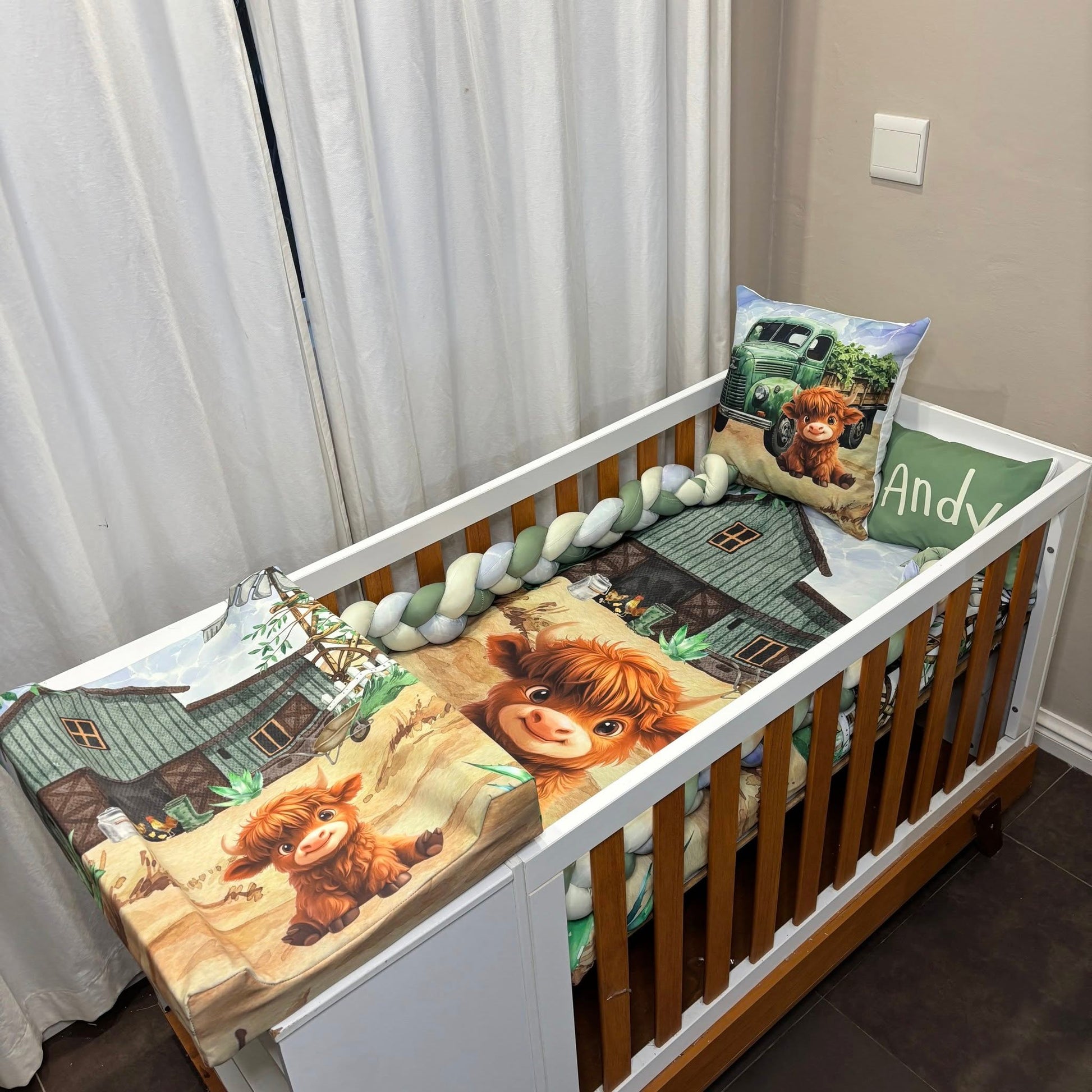 Duvet cover & Inner, or Comforter, Baby Pillow & Inner, Scatter & Inner, 3 M Bumper and a Fitted sheet to fit cot