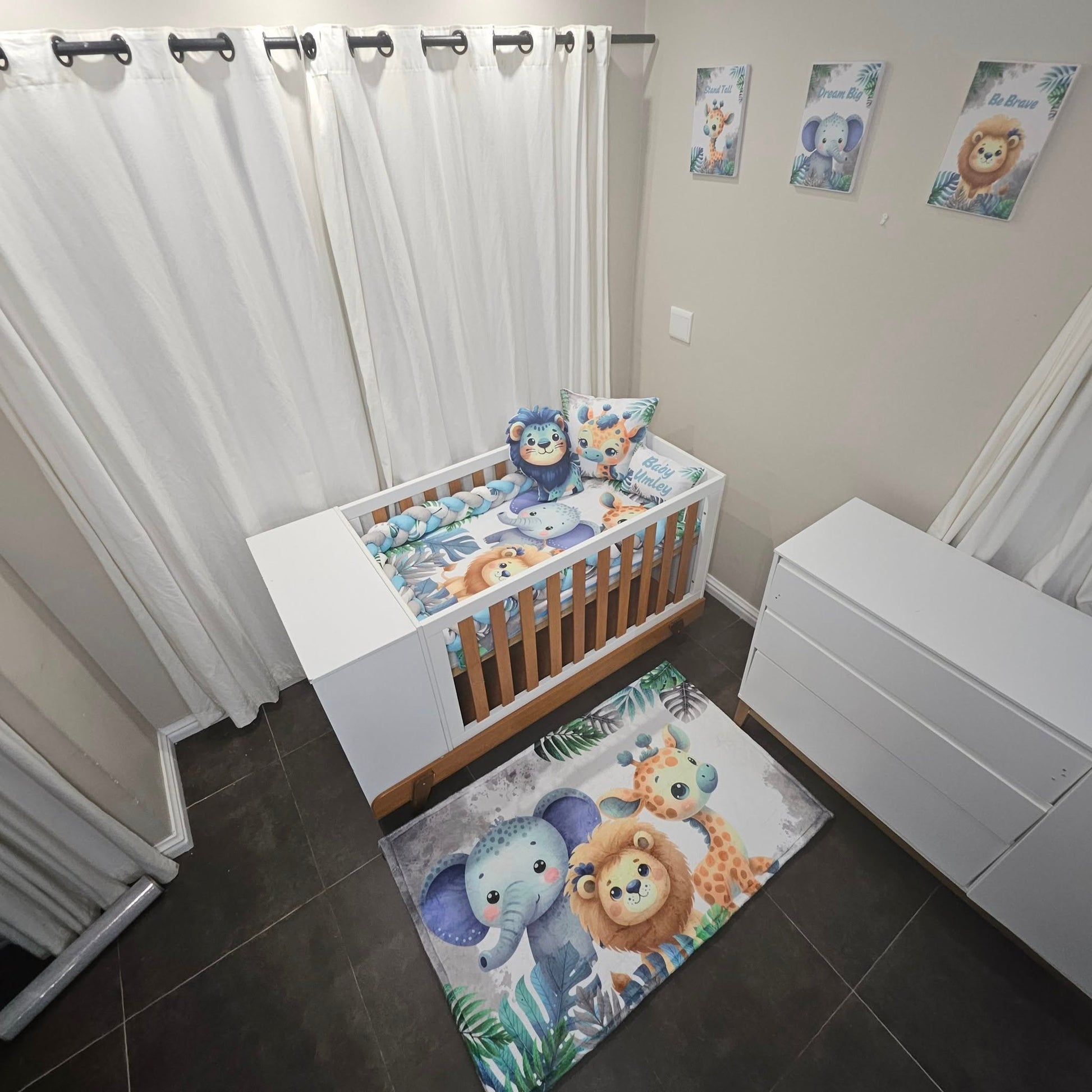 Duvet cover & Inner, or Comforter, Baby Pillow & Inner, Scatter & Inner, Waterproof Changing Mat Cover & Changing Mat Inner, 3 M Bumper and a Fitted sheet to fit cot