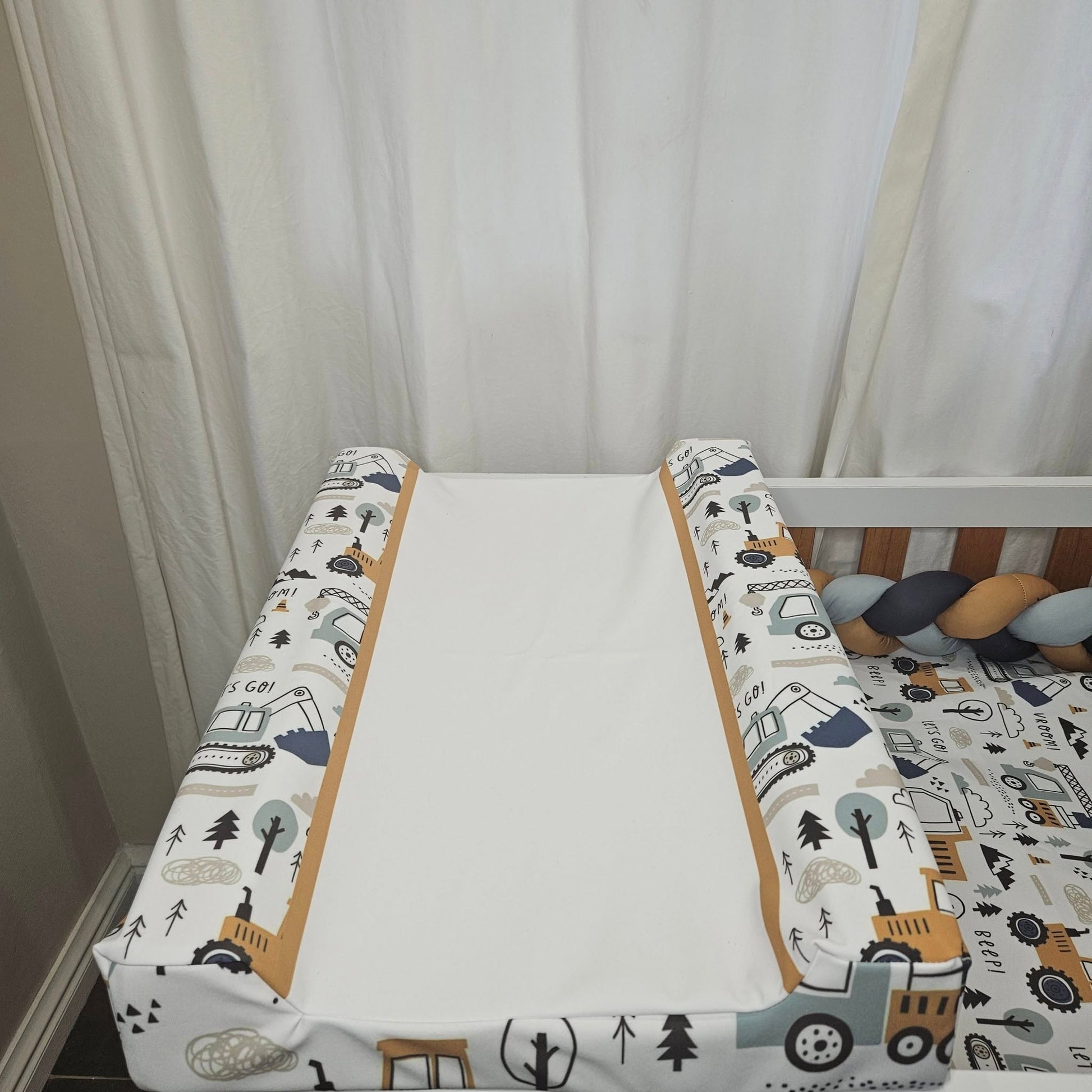 Duvet cover & Inner, or Comforter, Baby Pillow & Inner, Scatter & Inner, Waterproof Changing Mat Cover & Changing Mat Inner, 3 M Bumper and a Fitted sheet to fit cot