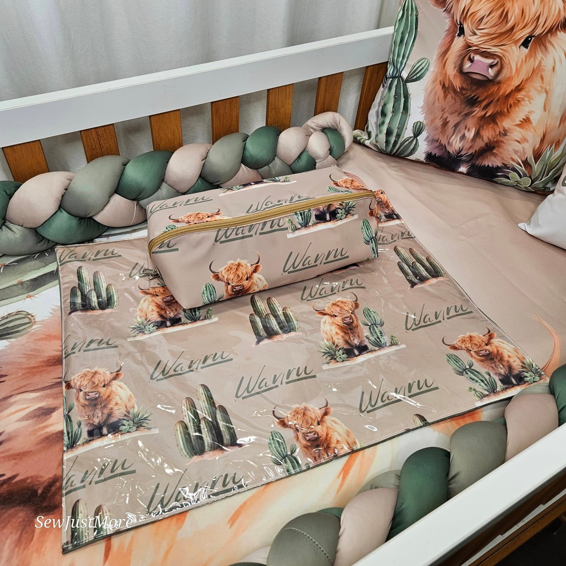 Also comes with a travel diaper changing set. A nappy changing mat so that nappies can be changed anywhere and a bag to hold that wipes and diapers. Also included is a small swaddle blanket.