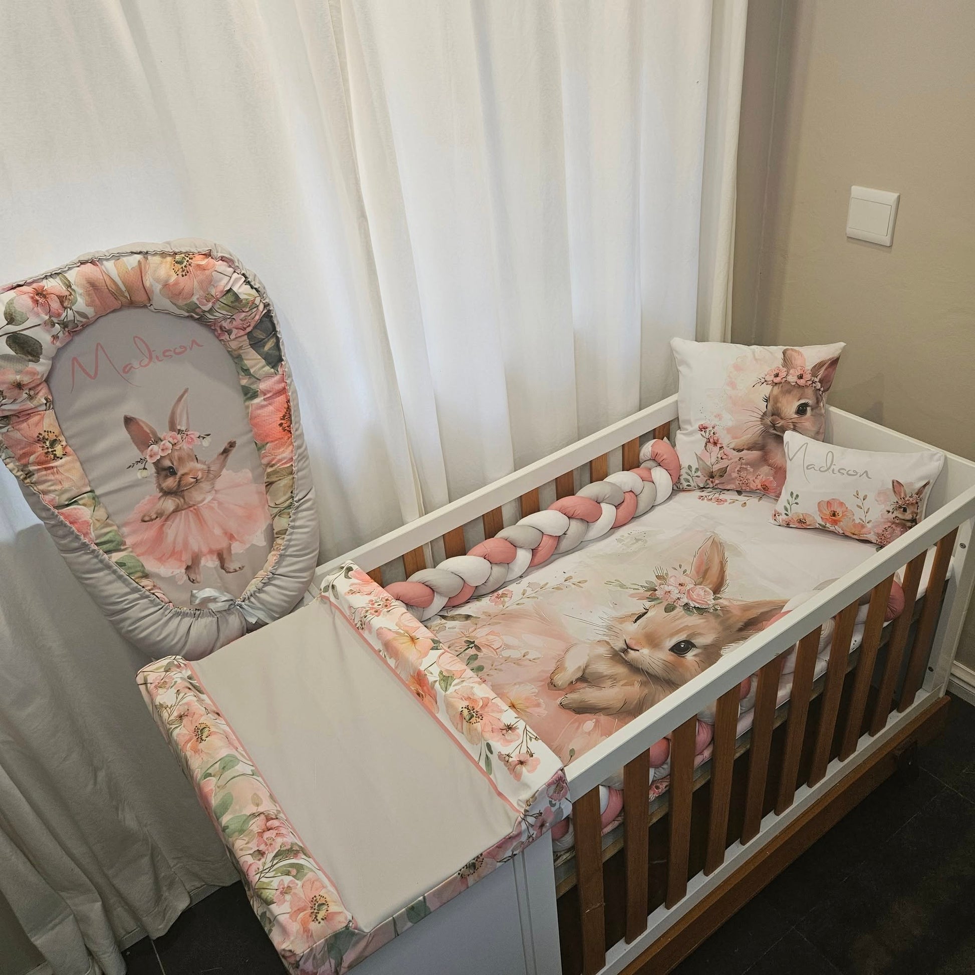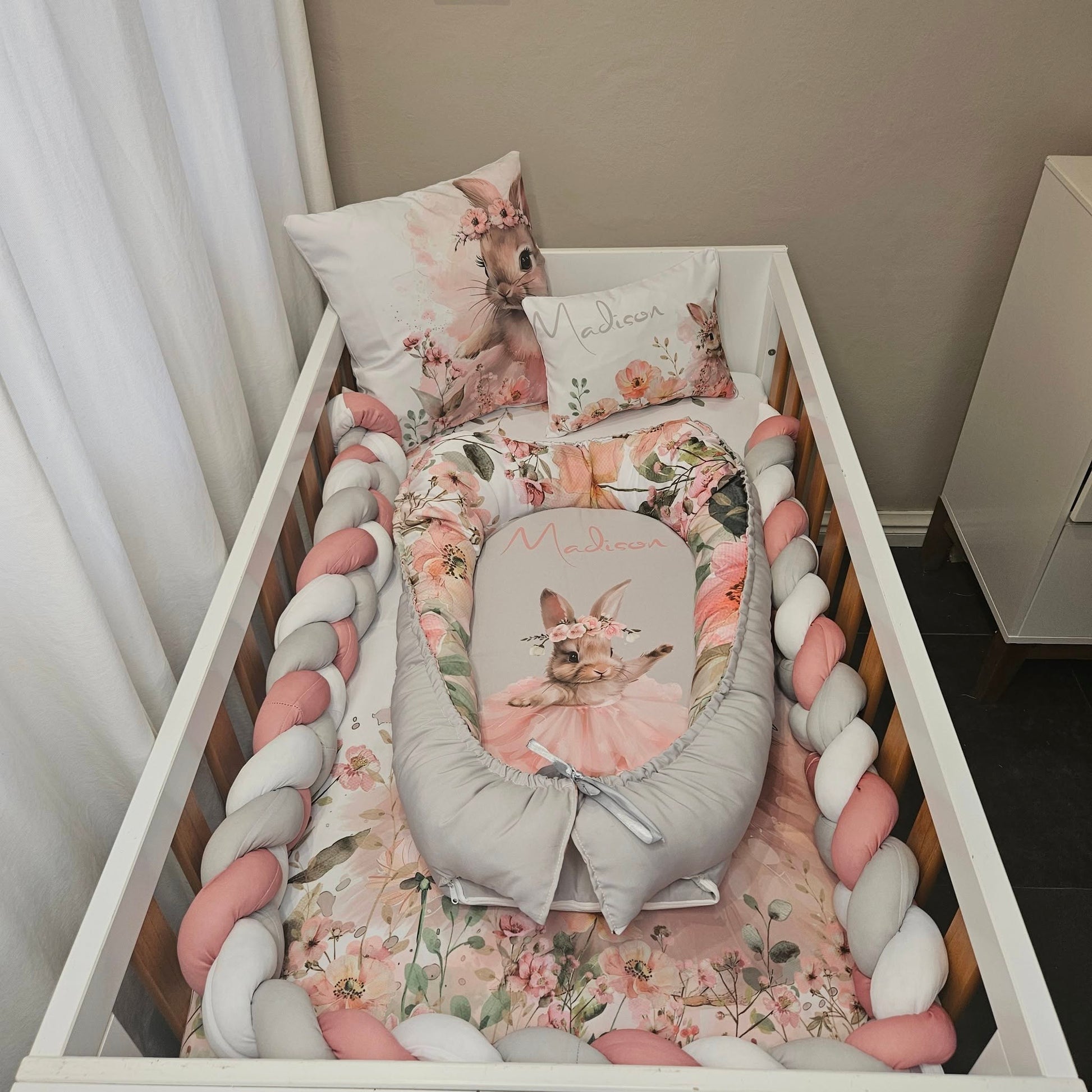 Duvet cover & Inner, or Comforter, Baby Pillow & Inner, Scatter & Inner, Baby Nest, 3 M Bumper and a Fitted sheet to fit cot