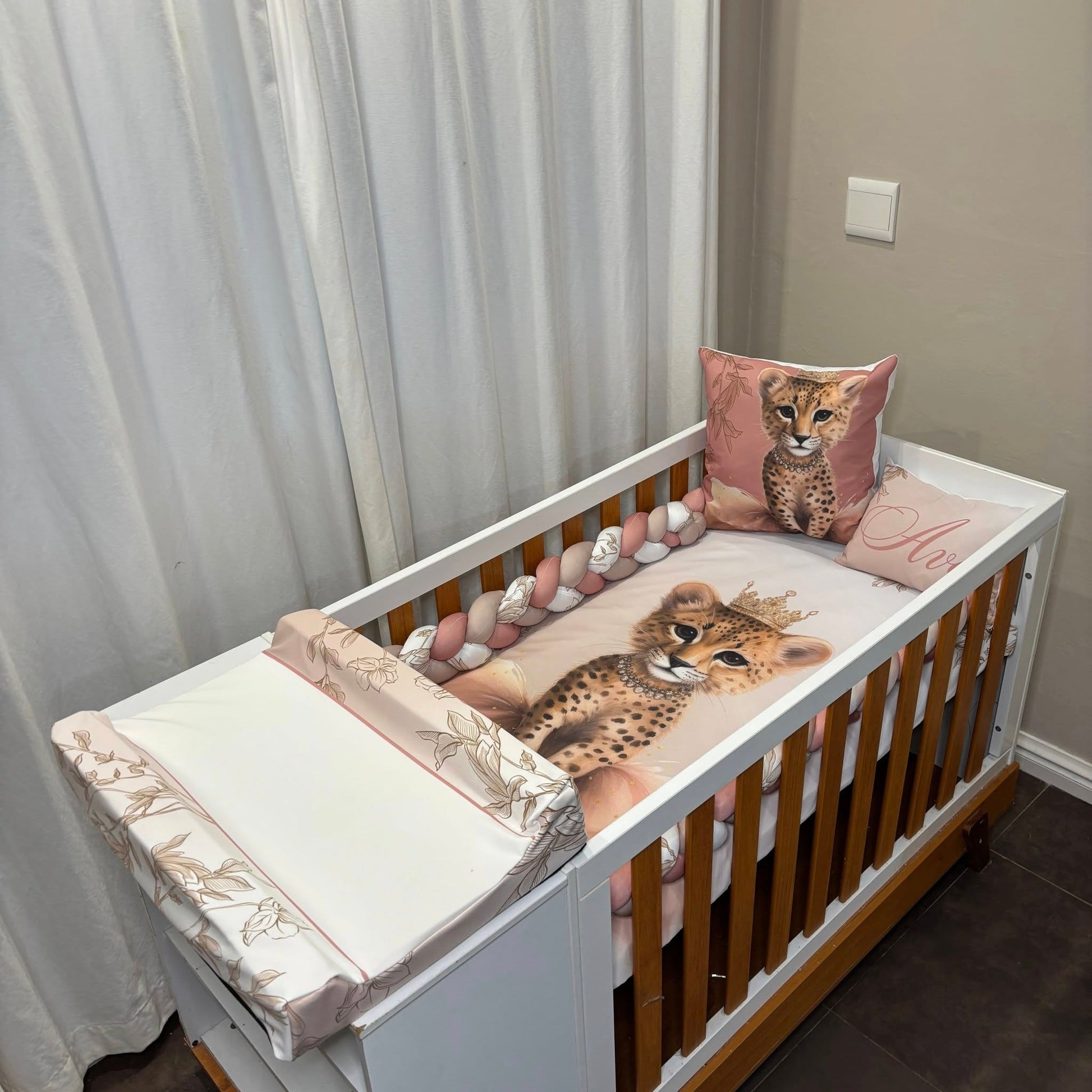 Duvet cover & Inner, or Comforter, Baby Pillow & Inner, Scatter & Inner, Waterproof Changing Mat Cover & Changing Mat Inner, 3 M Bumper and a Fitted sheet to fit cot