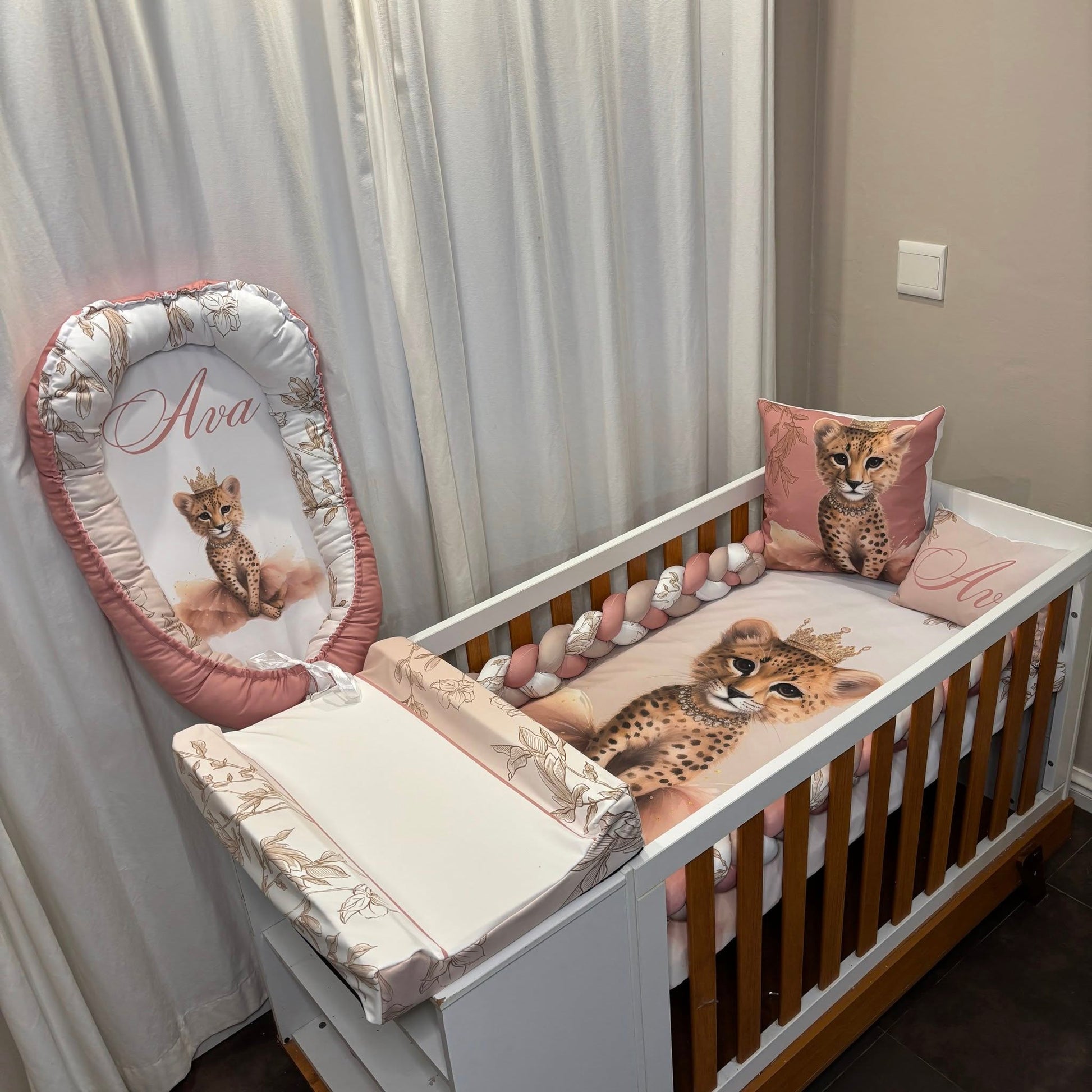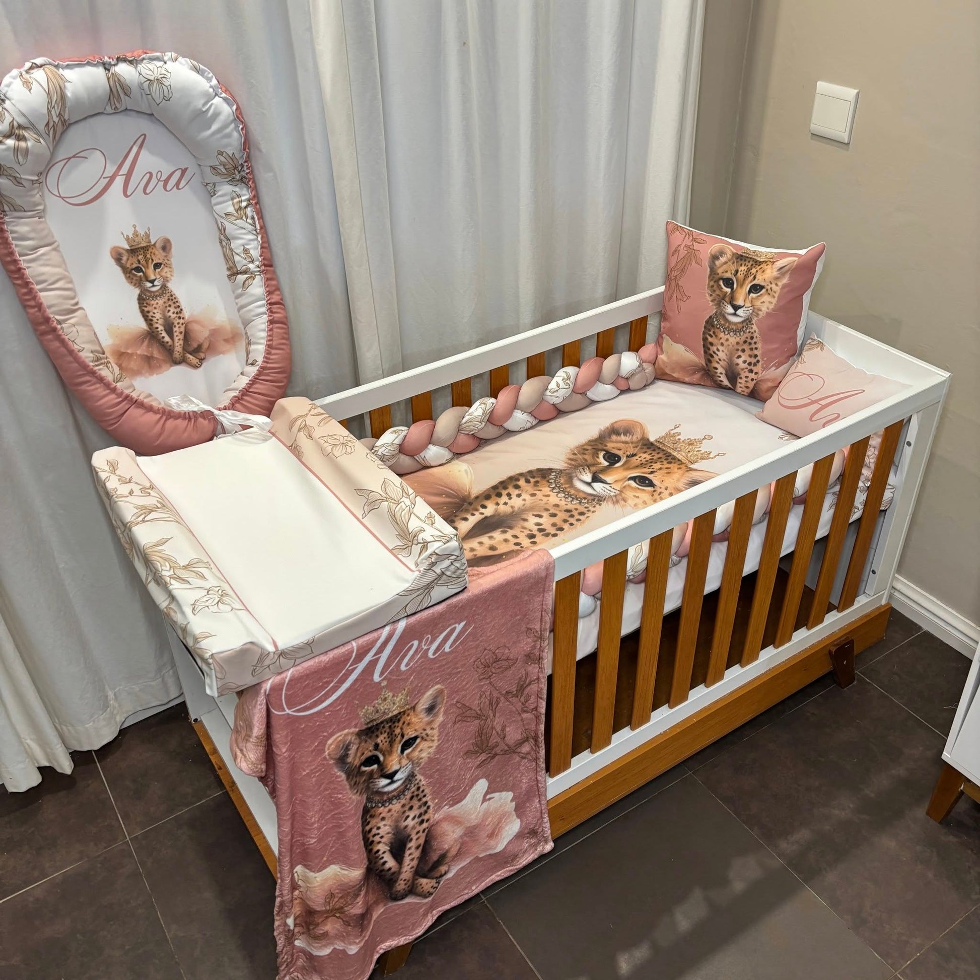 Duvet cover & Inner, or Comforter, Baby Pillow & Inner, Scatter & Inner, Baby nest, Waterproof Changing mat Cover & Inner, 3 M Bumper and a Fitted sheet to fit cot