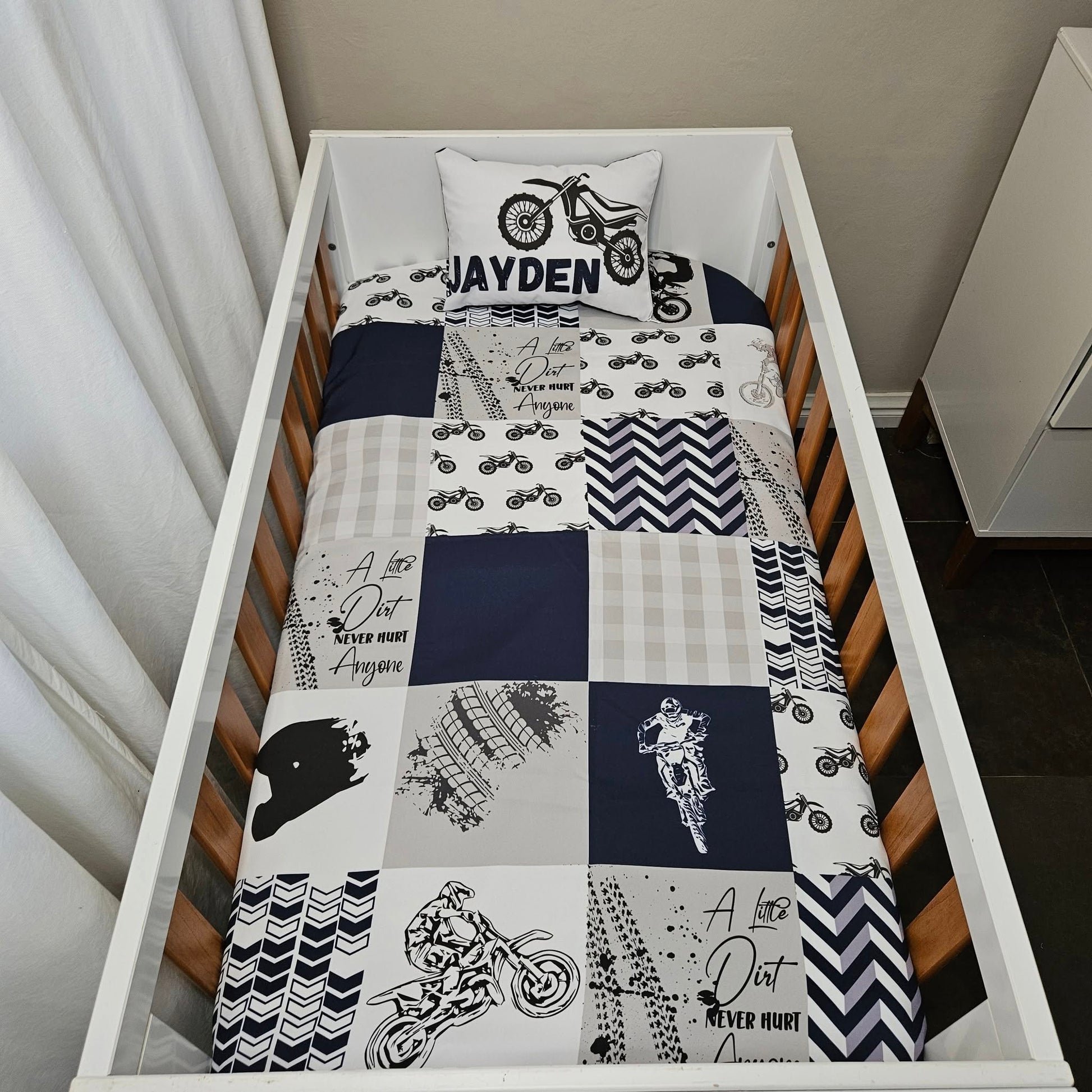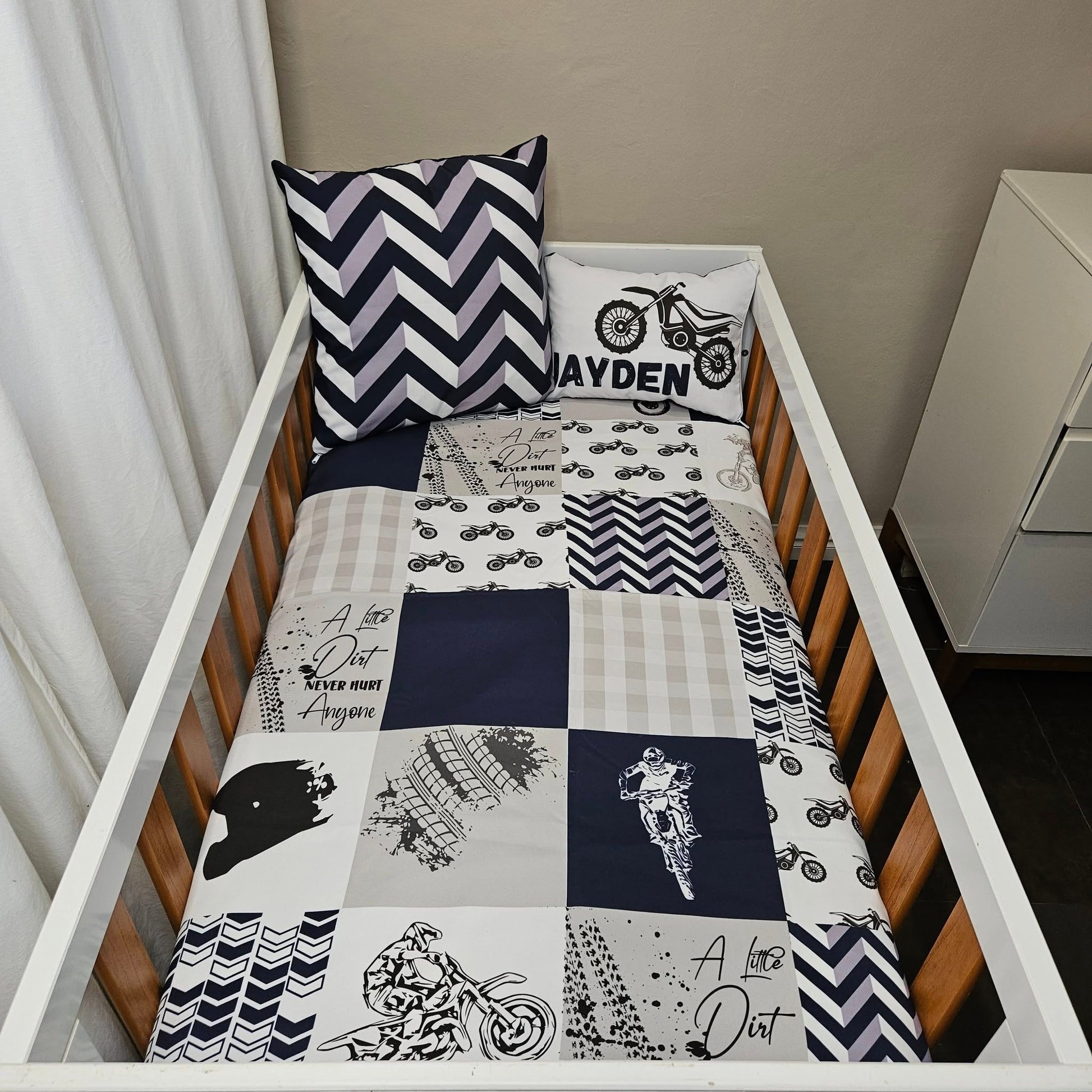 Duvet cover & Inner, or Comforter, Baby Pillow & Inner, Scatter & Inner, 3 M Bumper and a Fitted sheet to fit cot