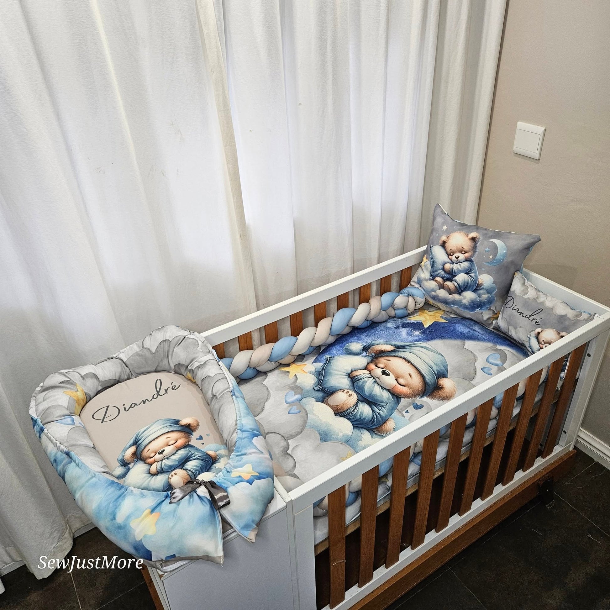 Duvet cover & Inner, or Comforter, Baby Pillow & Inner, Scatter & Inner, Baby Nest, 3 M Bumper and a Fitted sheet to fit cot