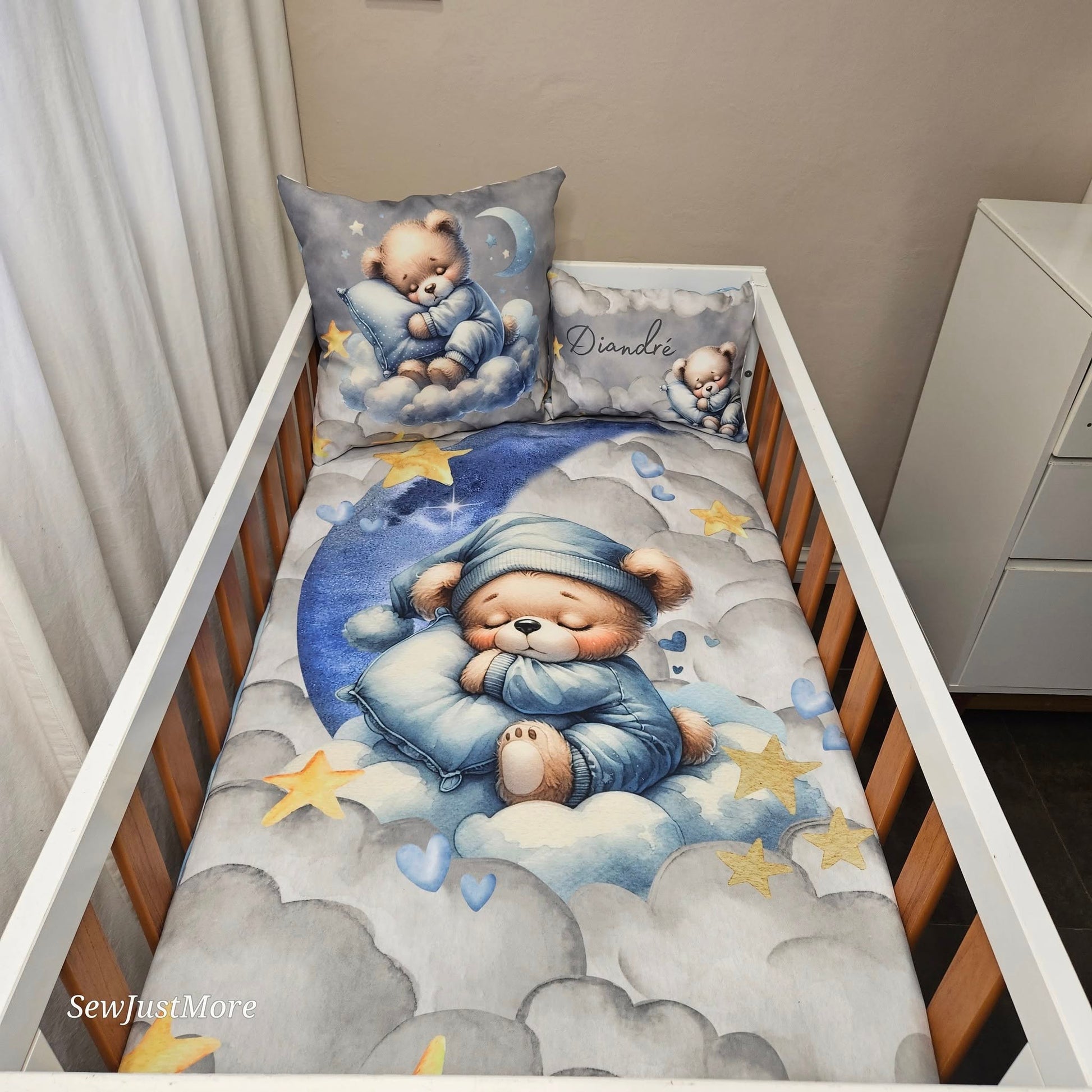Duvet cover & Inner, or Comforter, Baby Pillow & Inner, Scatter & Inner, 3 M Bumper and a Fitted sheet to fit cot