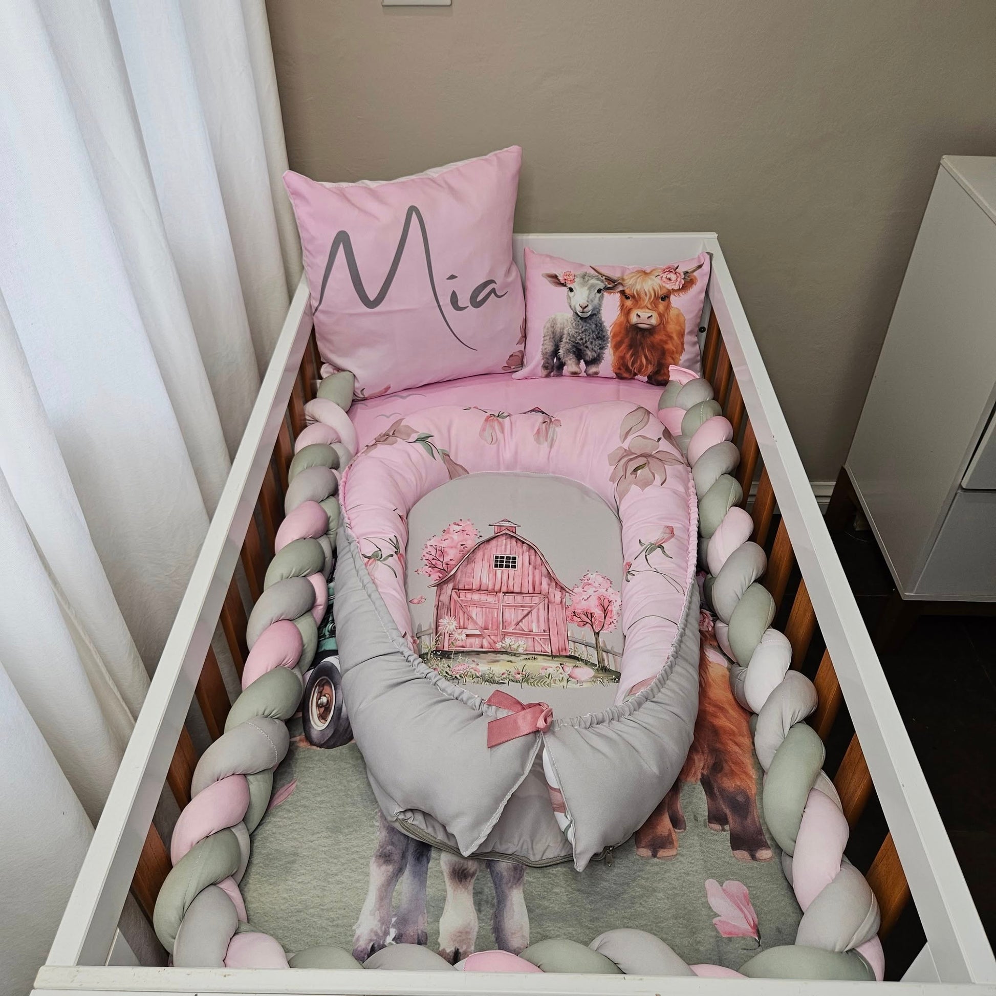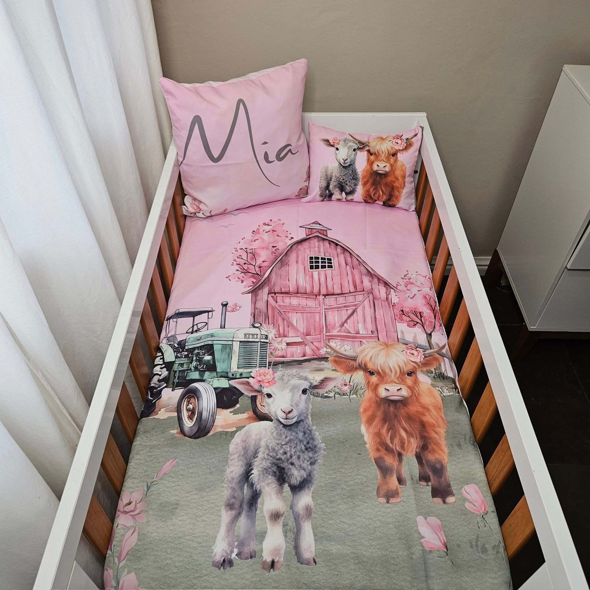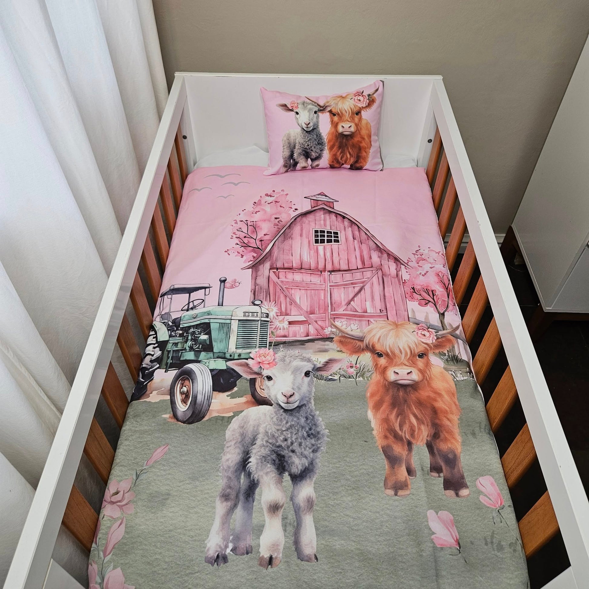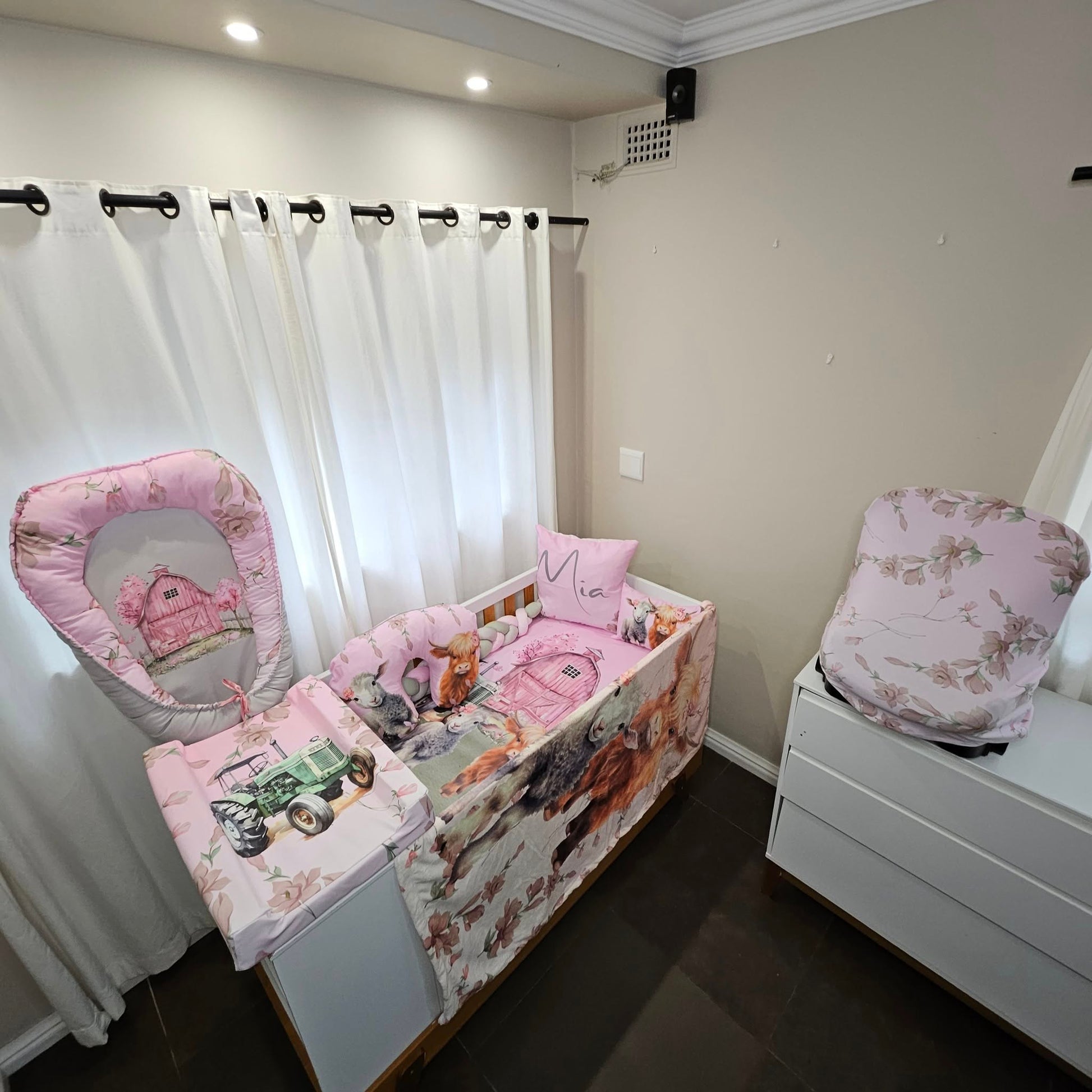 Who said that pink isn't beautiful? Check out this farm life inspired set for a girl with soft pinks and and everything beautiful to add that girly touch but still have that adventurous farm life character.It's beautiful, unique and so inspiring!For all your custom Nursery Sets and so much more contact us today!