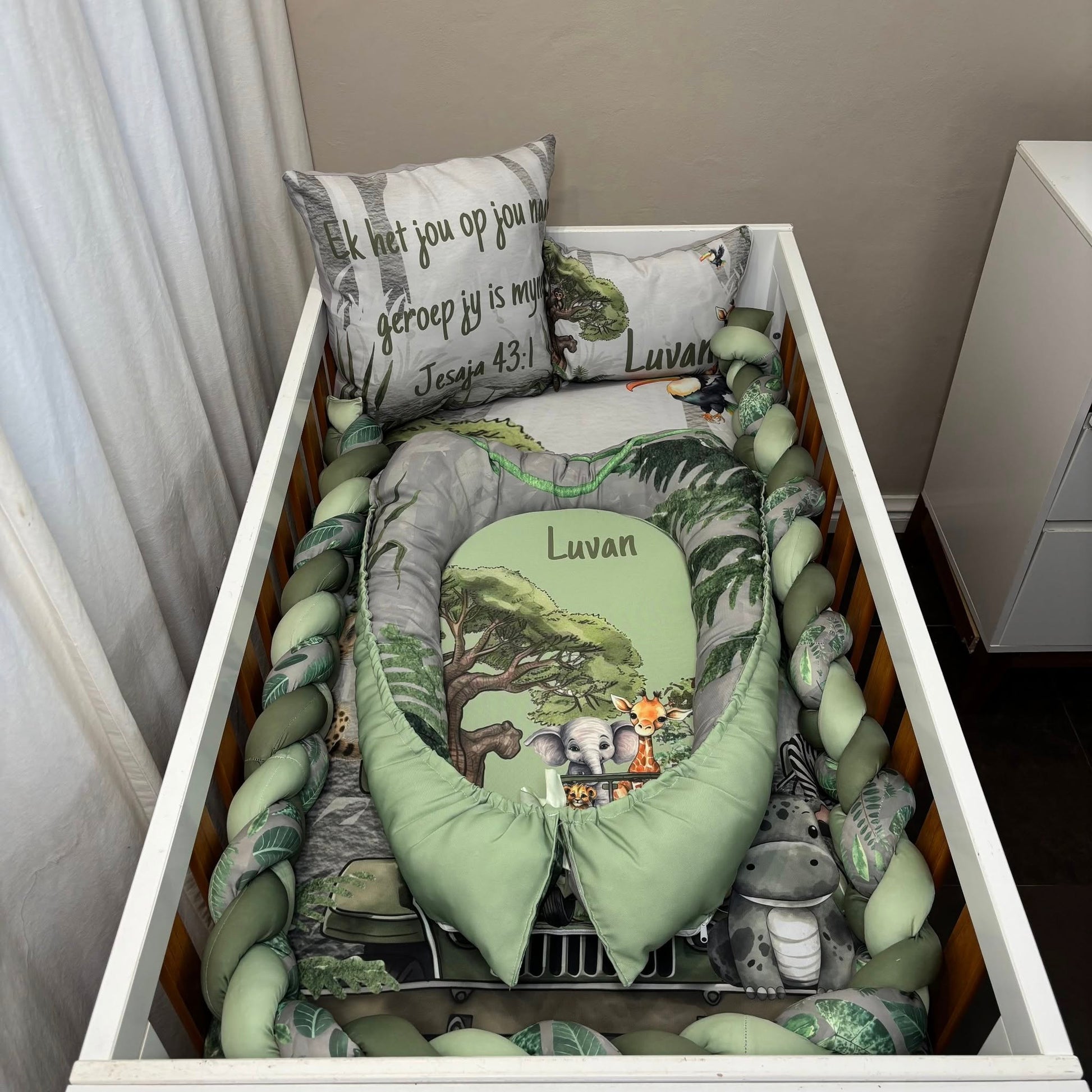 Duvet cover & Inner, or Comforter, Baby Pillow & Inner, Scatter & Inner, Baby nest, Waterproof Changing mat Cover & Inner, 3 M Bumper and a Fitted sheet to fit cot