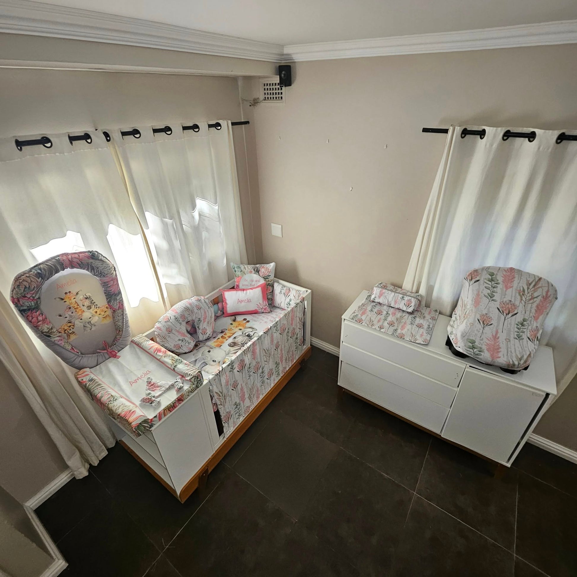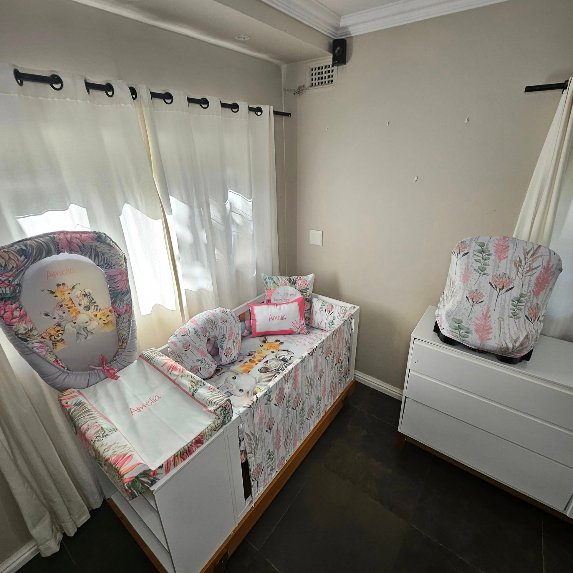 Duvet cover & Inner, or Comforter, Baby Pillow & Inner, Scatter & Inner, Baby nest, Waterproof Changing mat Cover & Inner, 3 M Bumper and a Fitted sheet to fit cot