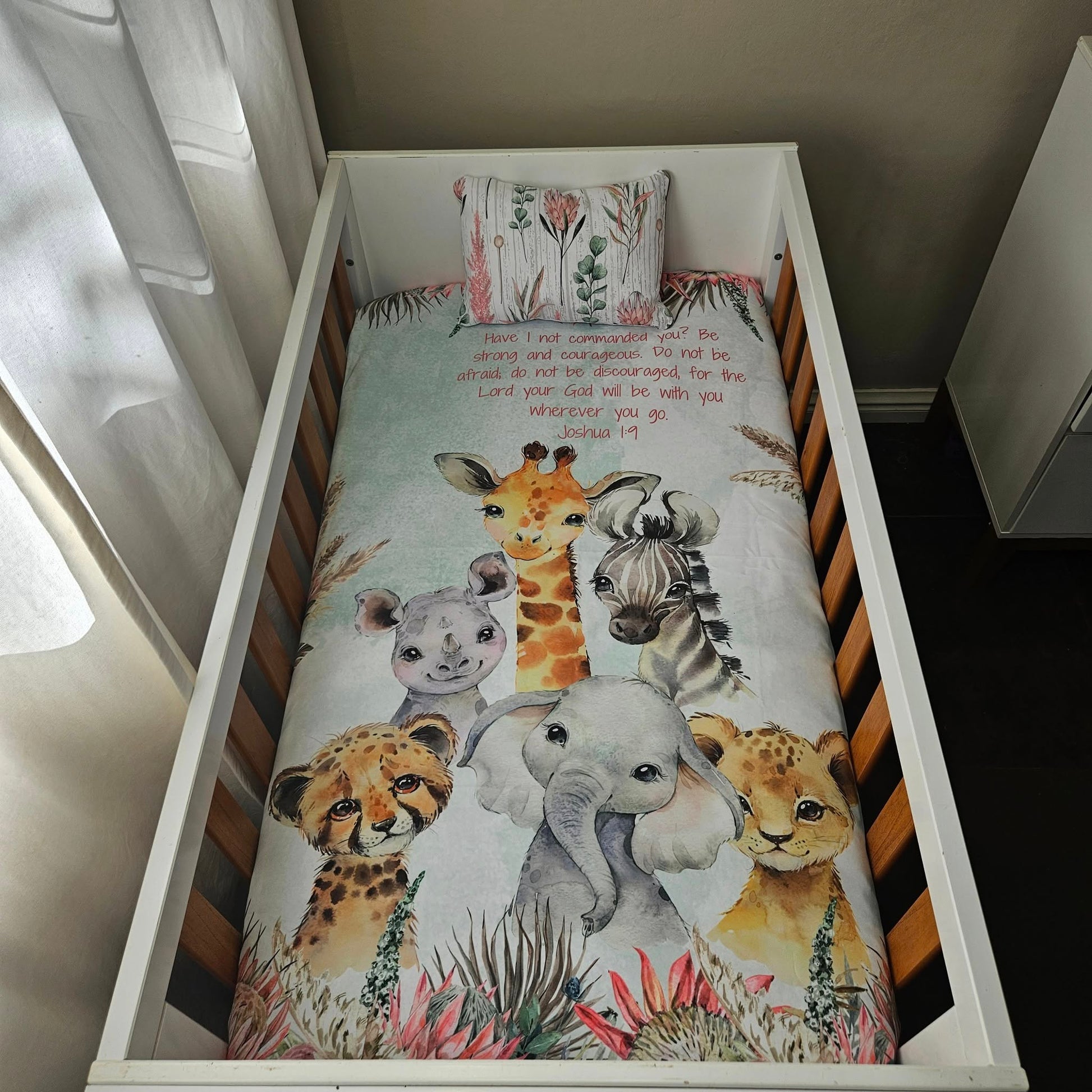 Duvet cover & Inner, or Comforter, Baby Pillow & Inner, Scatter & Inner, 3 M Bumper and a Fitted sheet to fit cot