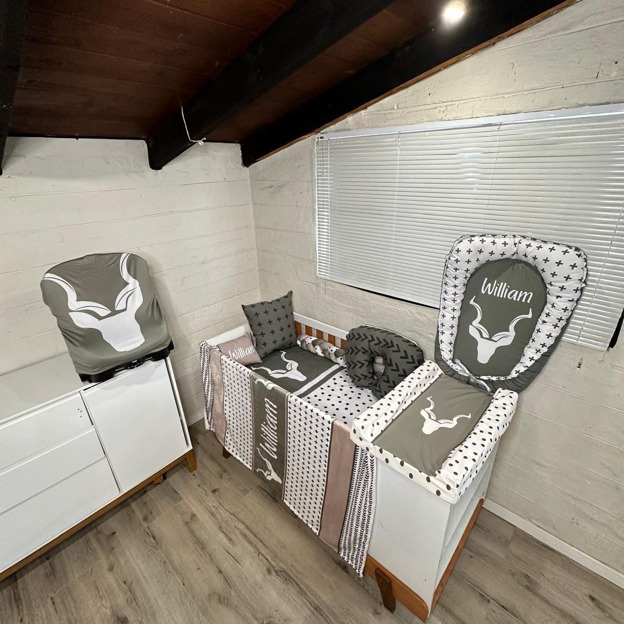 Duvet cover & Inner, or Comforter, Baby Pillow & Inner, Scatter & Inner, Baby nest, Waterproof Changing mat Cover & Inner, 3 M Bumper and a Fitted sheet to fit cot