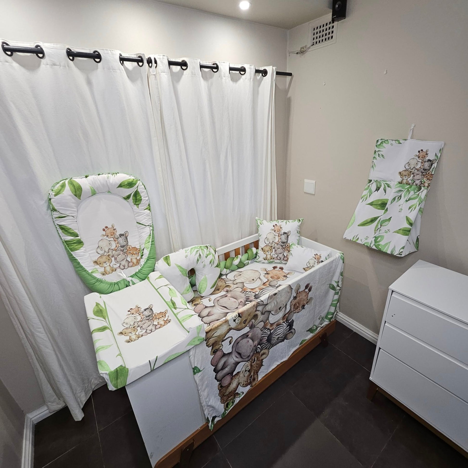 Duvet cover & Inner, or Comforter, Baby Pillow & Inner, Scatter & Inner, Waterproof Changing Mat Cover & Changing Mat Inner, 3 M Bumper and a Fitted sheet to fit cot
