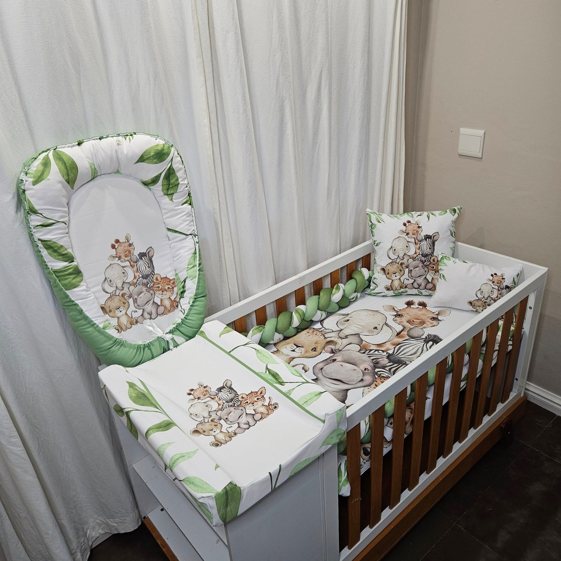 Duvet cover & Inner, or Comforter, Baby Pillow & Inner, Scatter & Inner, Baby nest, Waterproof Changing mat Cover & Inner, 3 M Bumper and a Fitted sheet to fit cot