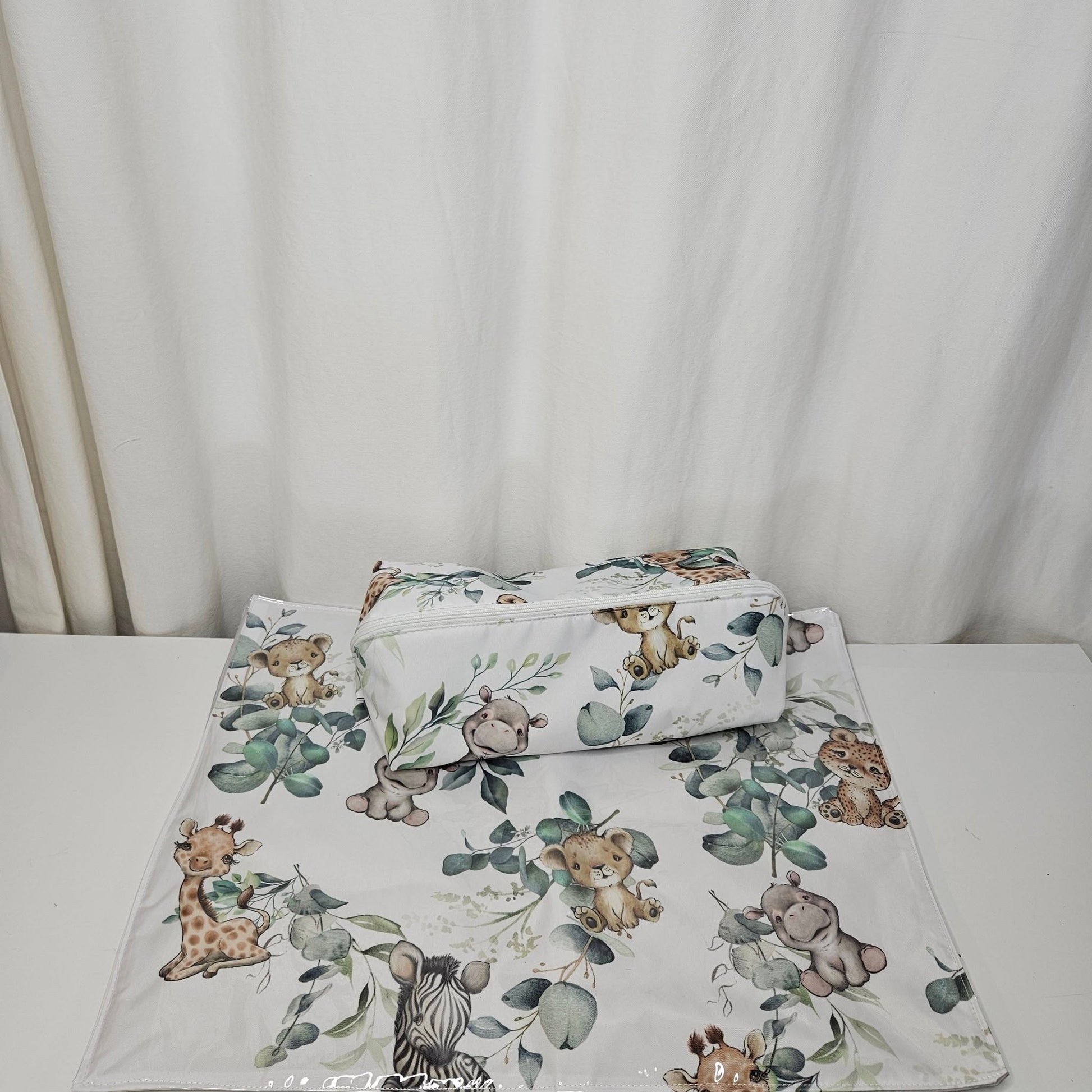 Duvet cover & Inner, or Comforter, Baby Pillow & Inner, Scatter & Inner, Nursing Pillow & Inner, Printed Towel set (5 piece), Printed Swaddle Blanket or Fleece, 3 M Bumper, Carry Cot, Waterproof Changing mat Cover & Inner, Play Gym, Play Doughnut, 3 x 3 A Canvas, Canopy, 2x Curtains 145 cm x 218cm, Hanging Diaper Bag, Cot Mobile and a Fitted Sheet to fit Cot