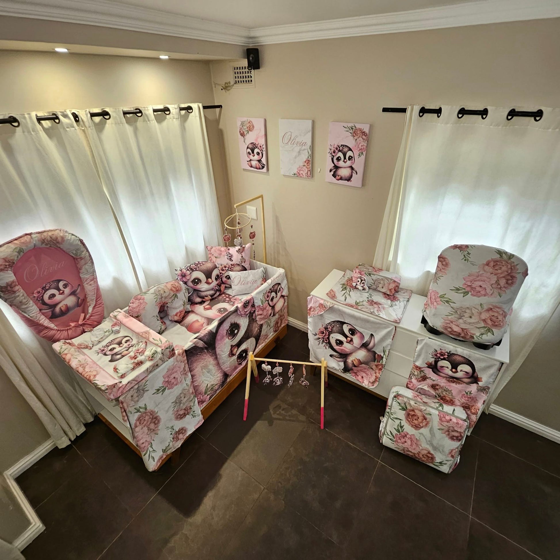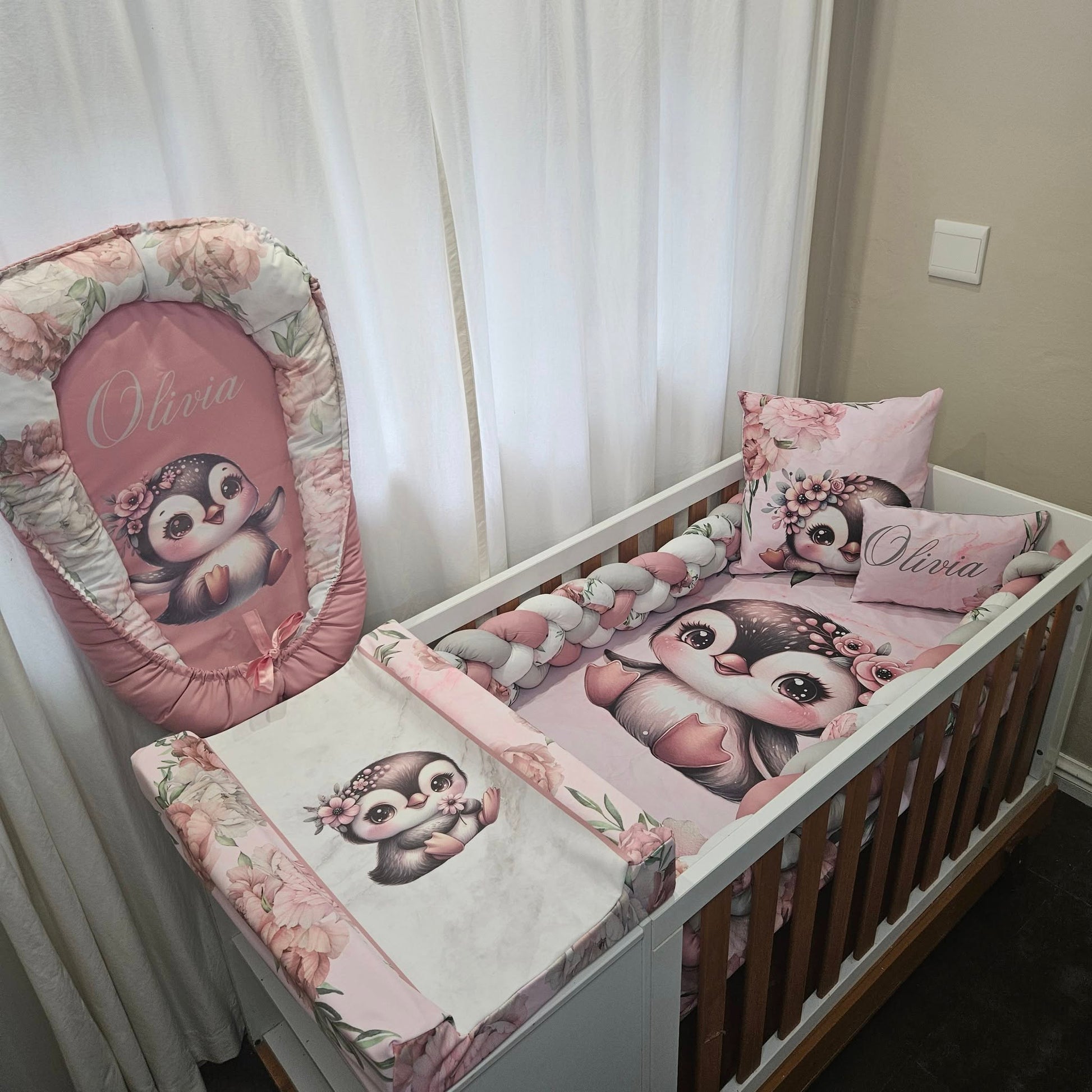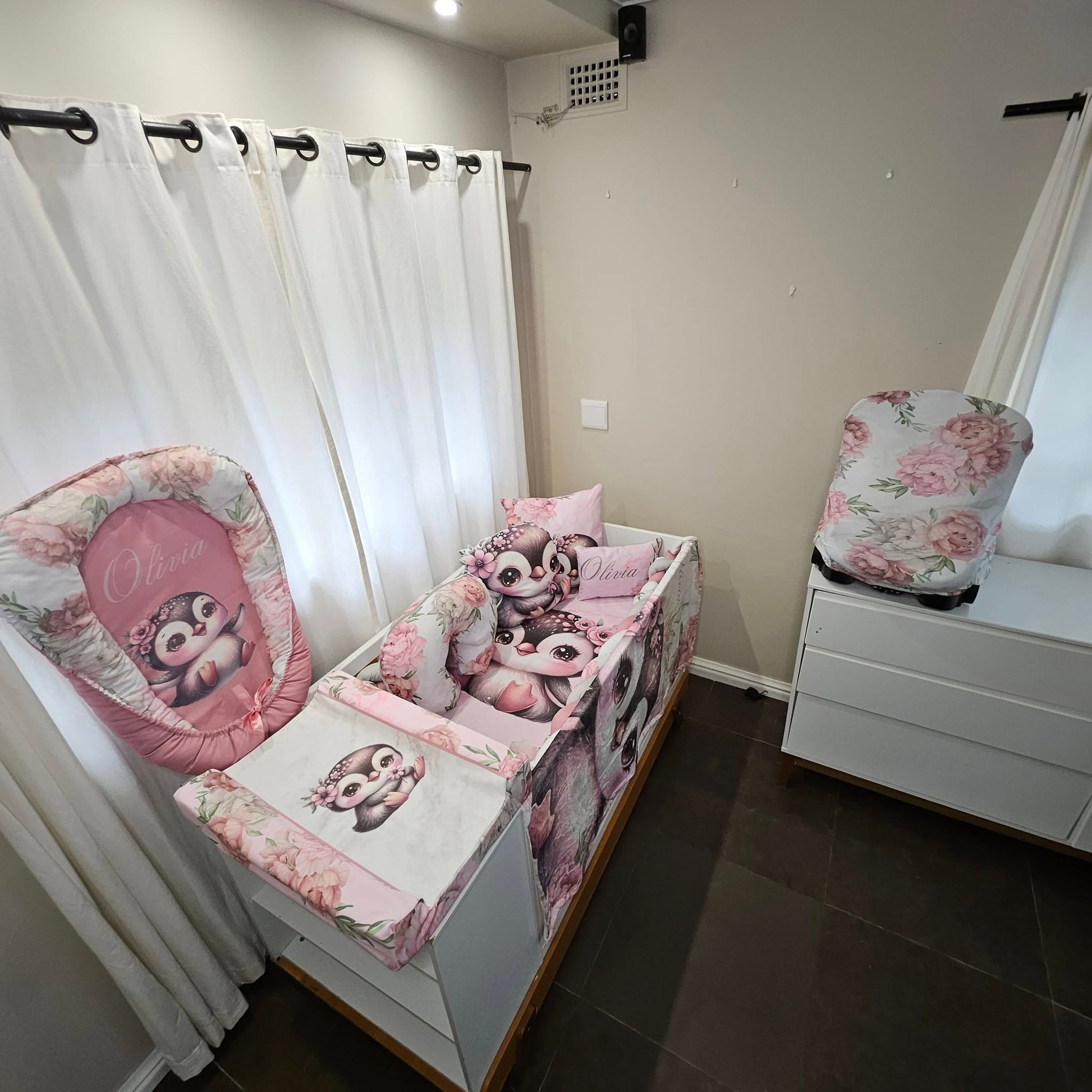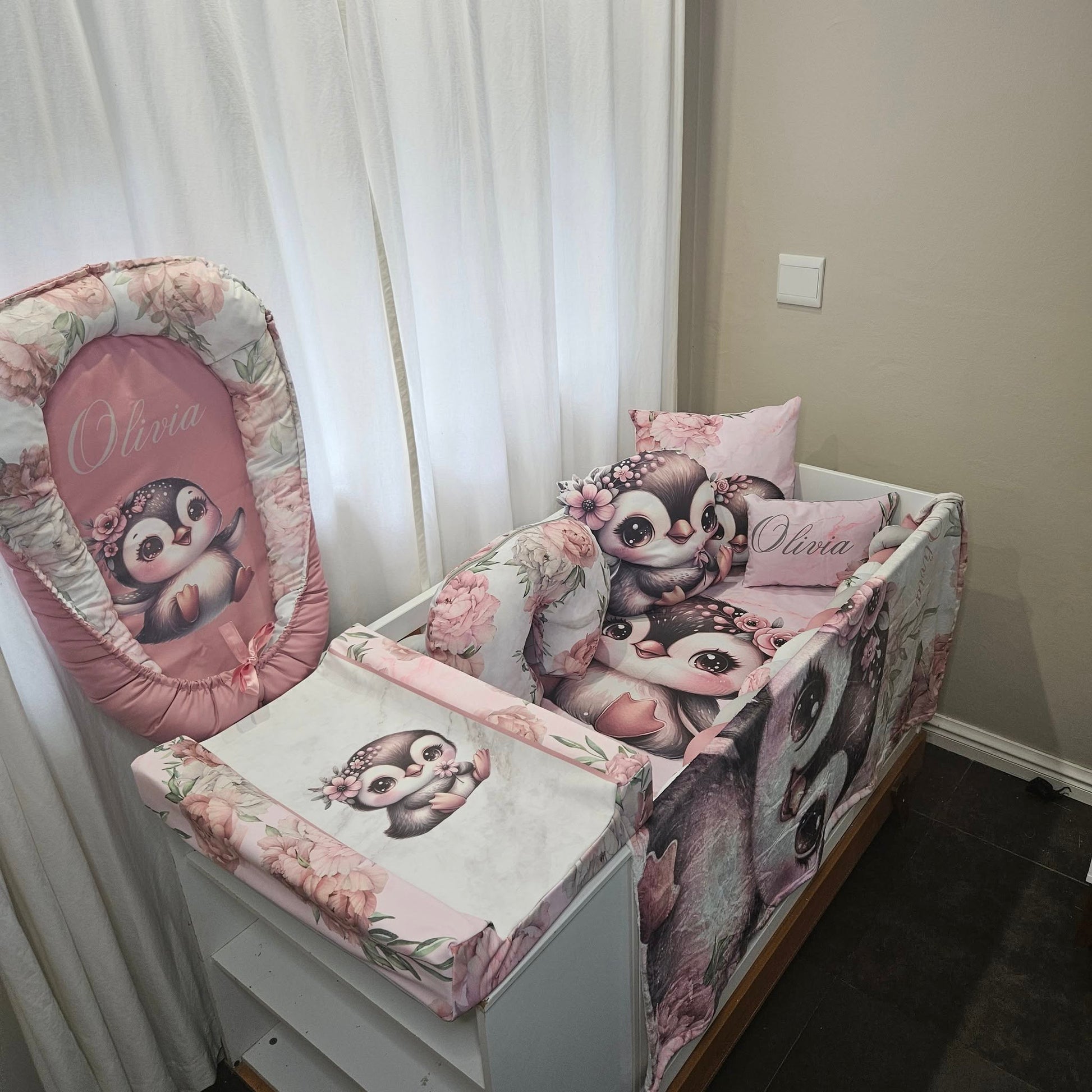 Duvet cover & Inner, or Comforter, Baby Pillow & Inner, Scatter & Inner, Baby nest, Waterproof Changing mat Cover & Inner, 3 M Bumper and a Fitted sheet to fit cot