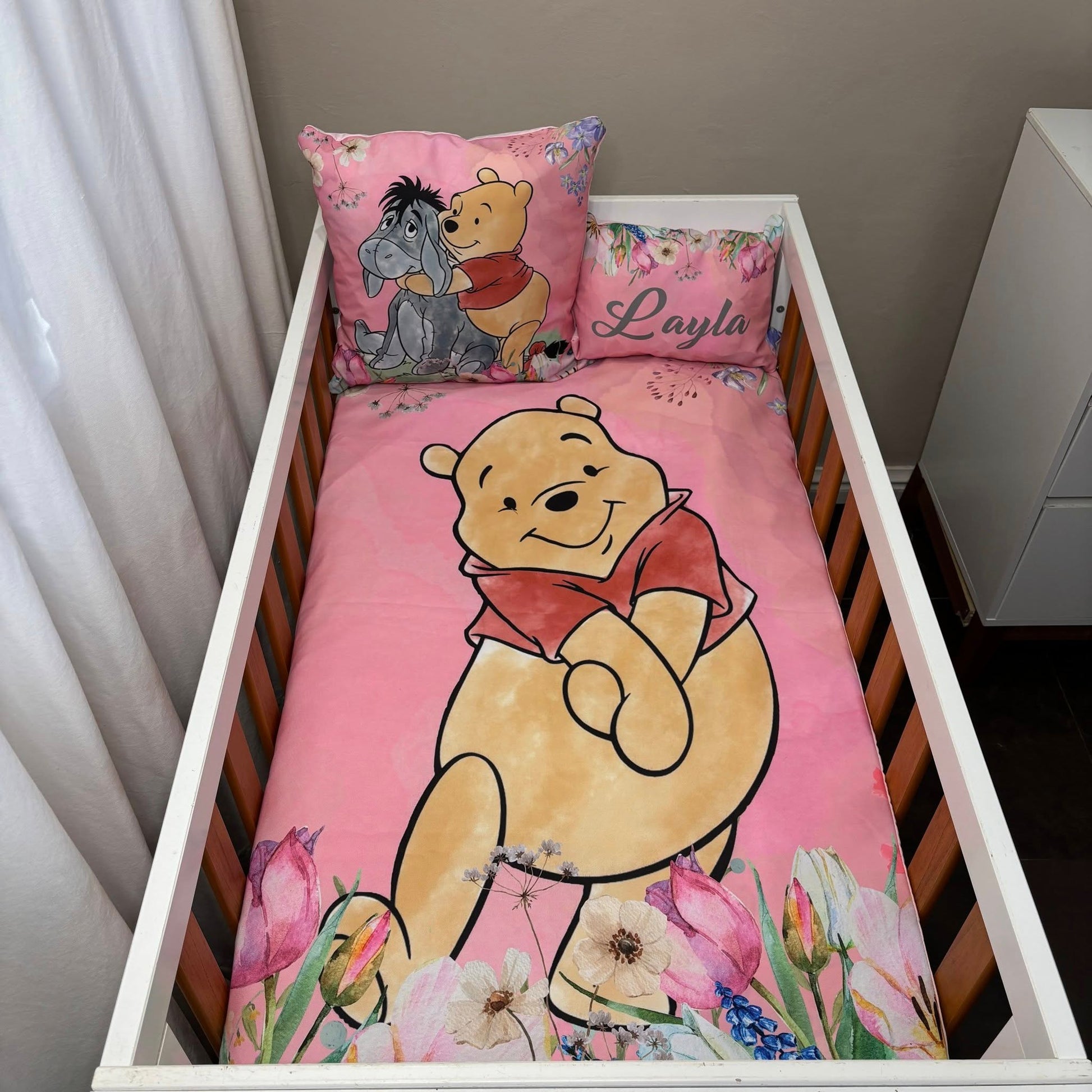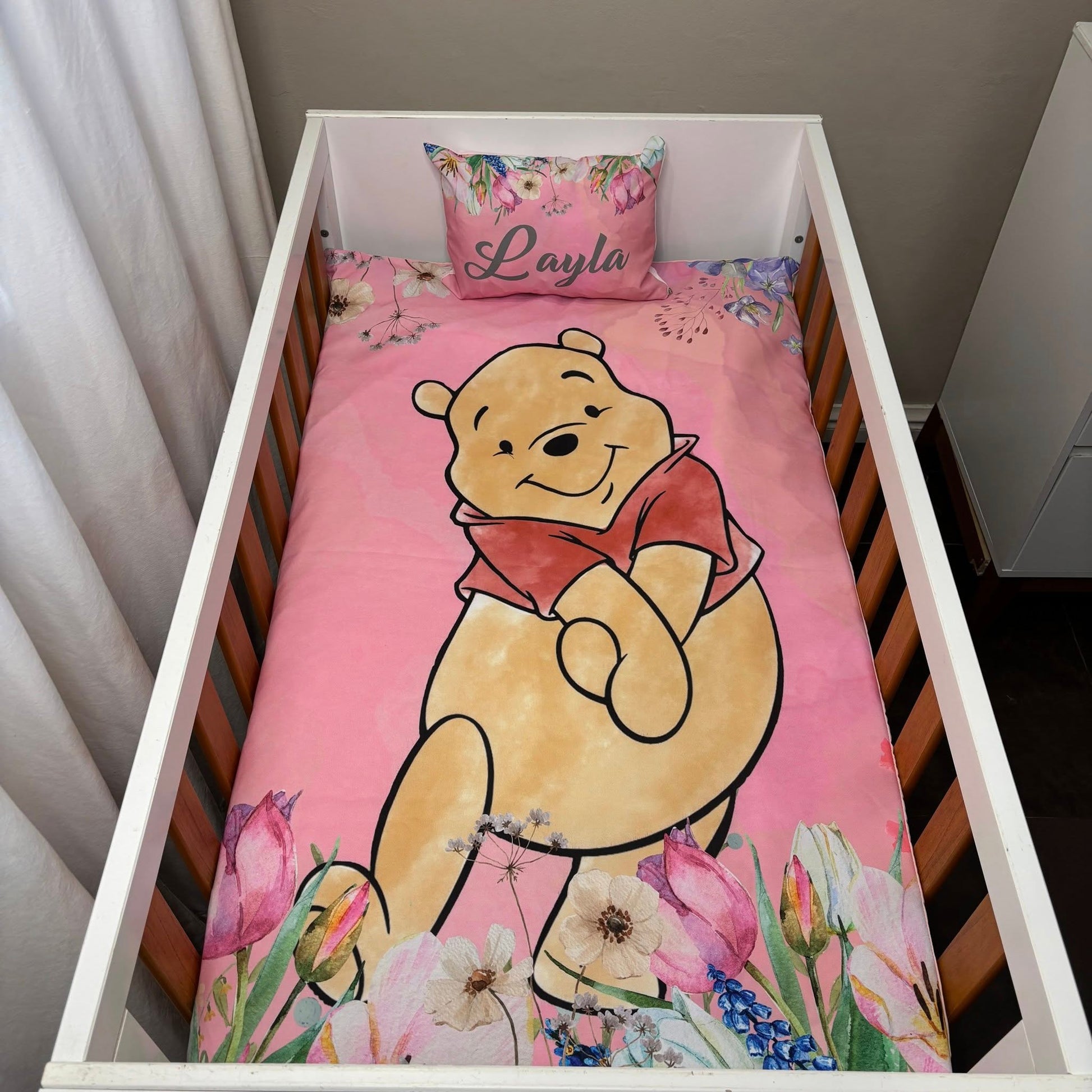 Pink Floral Classic Pooh cot linen