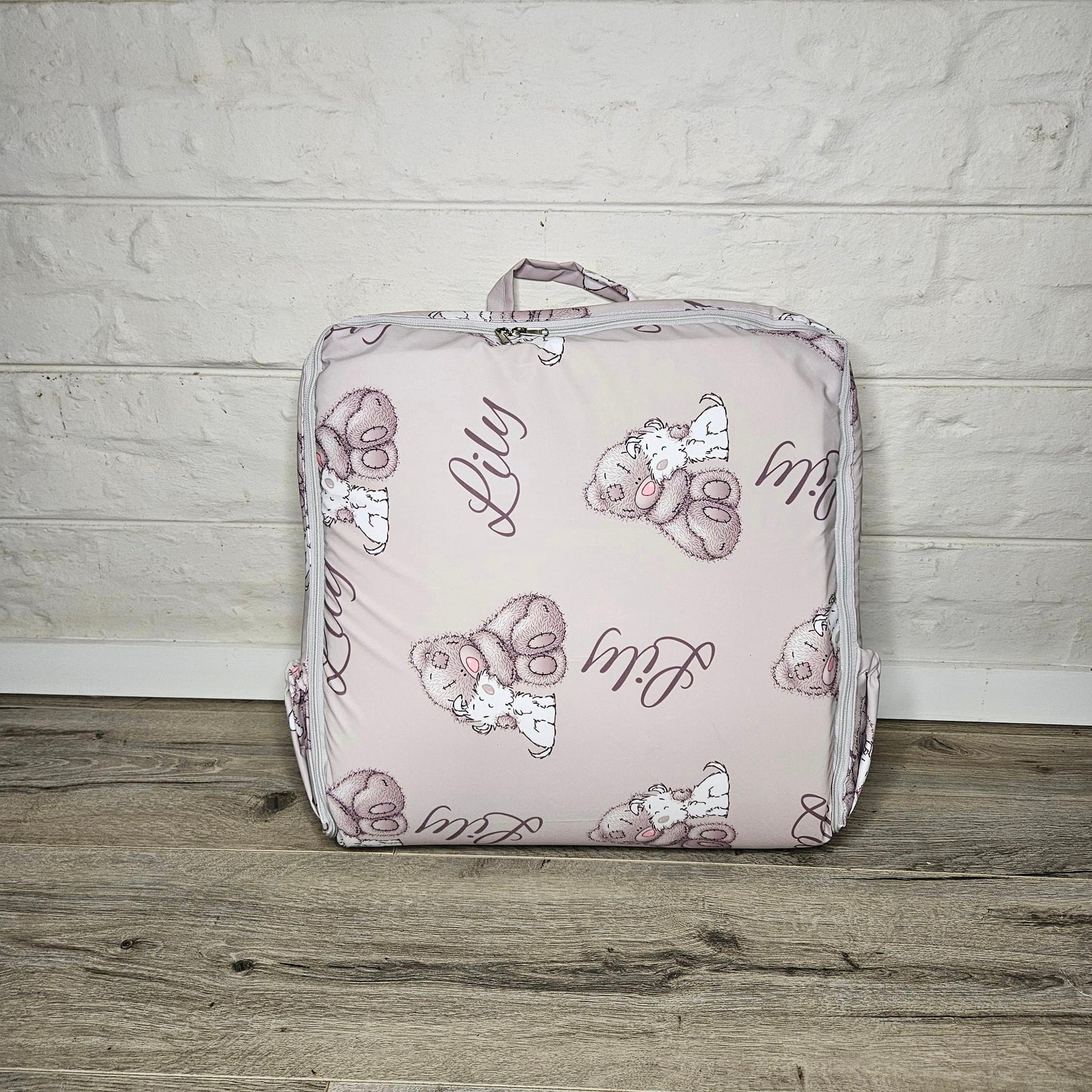 This idea has been in development for months and finally we can show it! A fully custom printed travel baby nest that serves as a bag as well!
