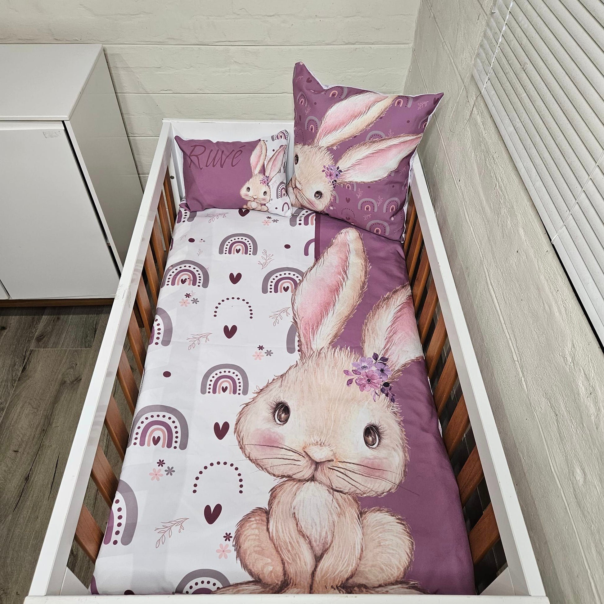 Duvet cover & Inner, or Comforter, Baby Pillow & Inner, Scatter & Inner, 3 M Bumper and a Fitted sheet to fit cot