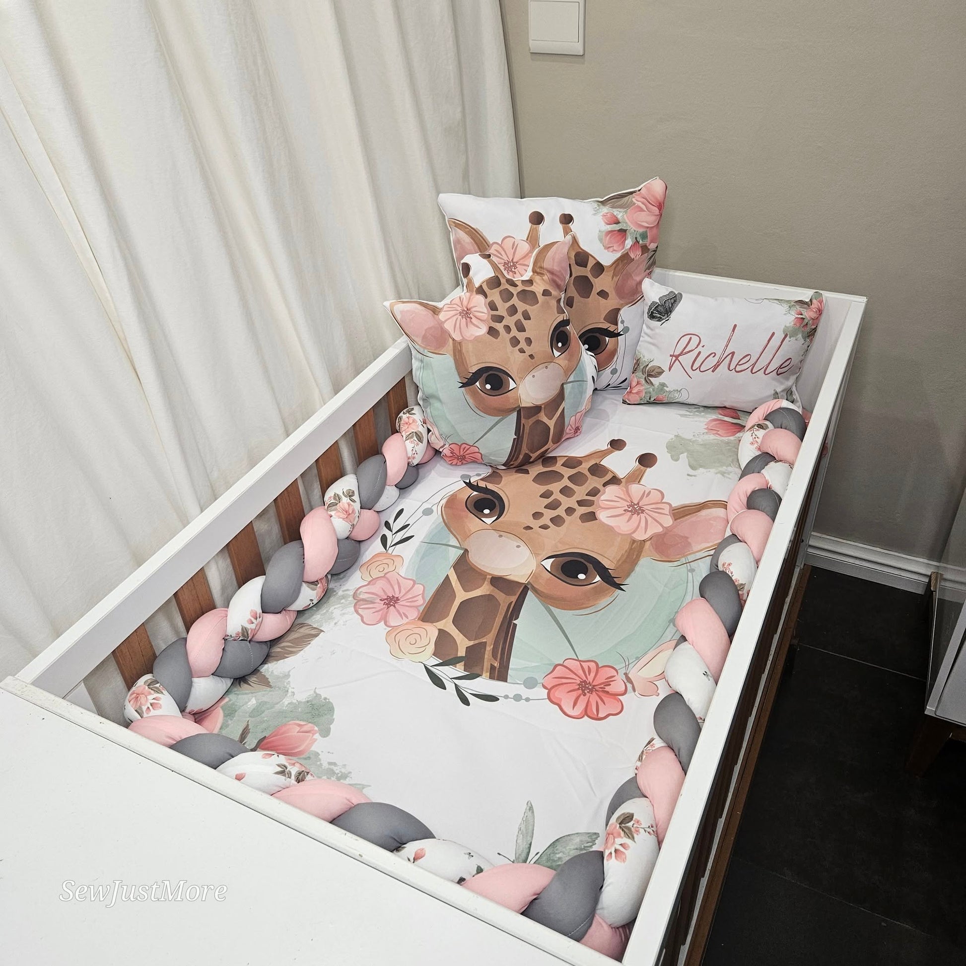 Duvet cover & Inner, or Comforter, Baby Pillow & Inner, Scatter & Inner, Waterproof Changing Mat Cover & Changing Mat Inner, 3 M Bumper and a Fitted sheet to fit cot
