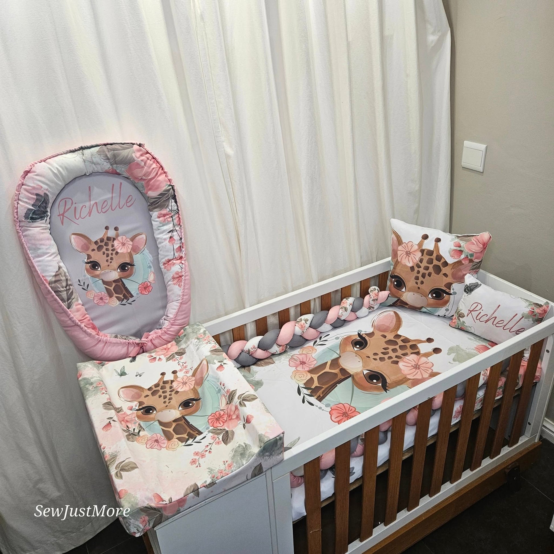 Duvet cover & Inner, or Comforter, Baby Pillow & Inner, Scatter & Inner, Baby nest, Waterproof Changing mat Cover & Inner, 3 M Bumper and a Fitted sheet to fit cot