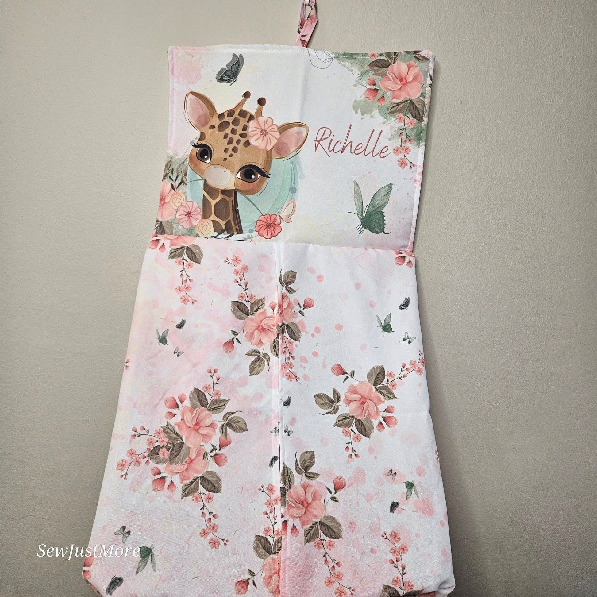 Custom printed nappy hanging bag. Ideal for for hanging near your cot or changing station offering easy access making changing that diaper less of a battle. Also serves a decorative purpose filling up empty spaces and complimenting your nursery's theme.