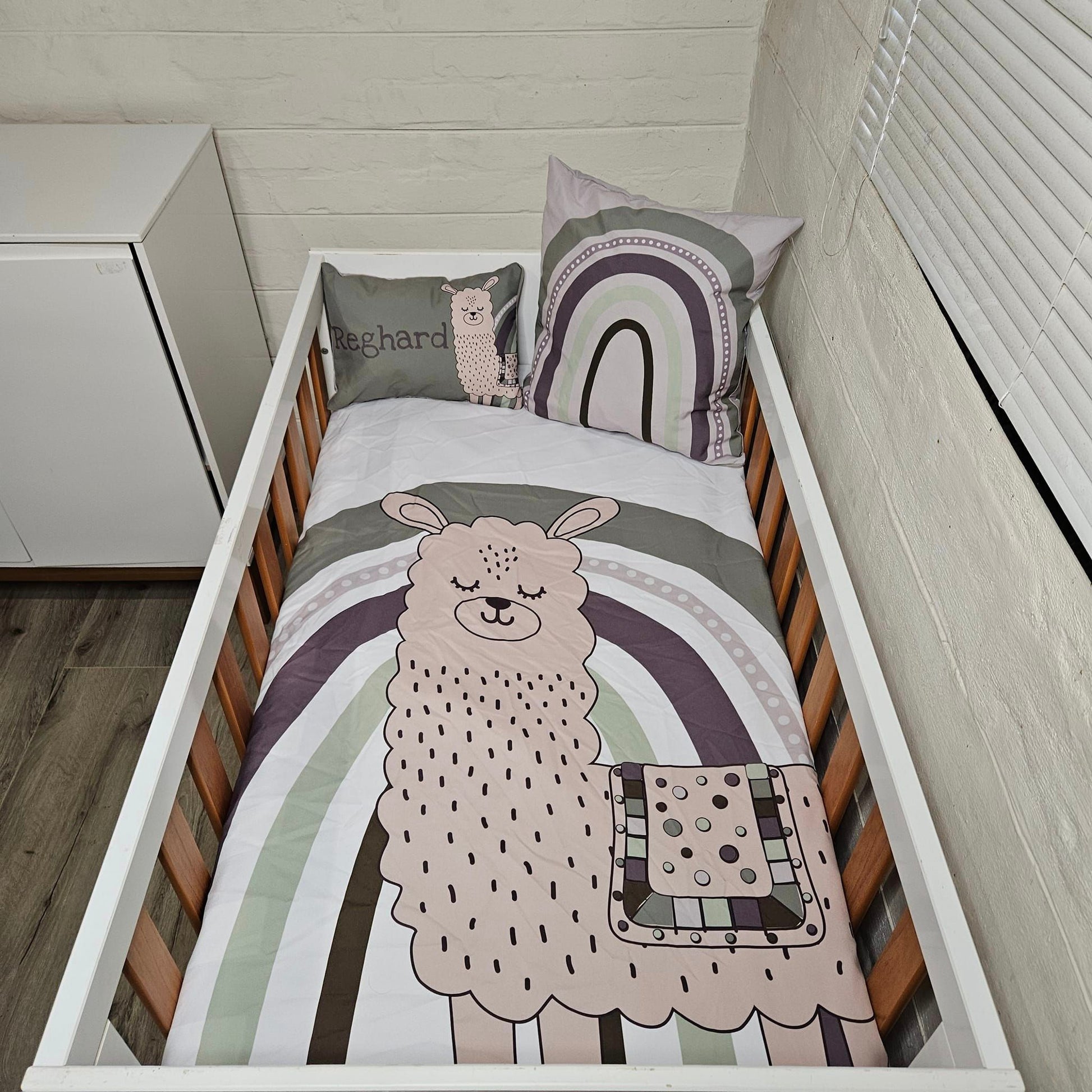 Duvet cover & Inner, or Comforter, Baby Pillow & Inner, Scatter & Inner, 3 M Bumper and a Fitted sheet to fit cot