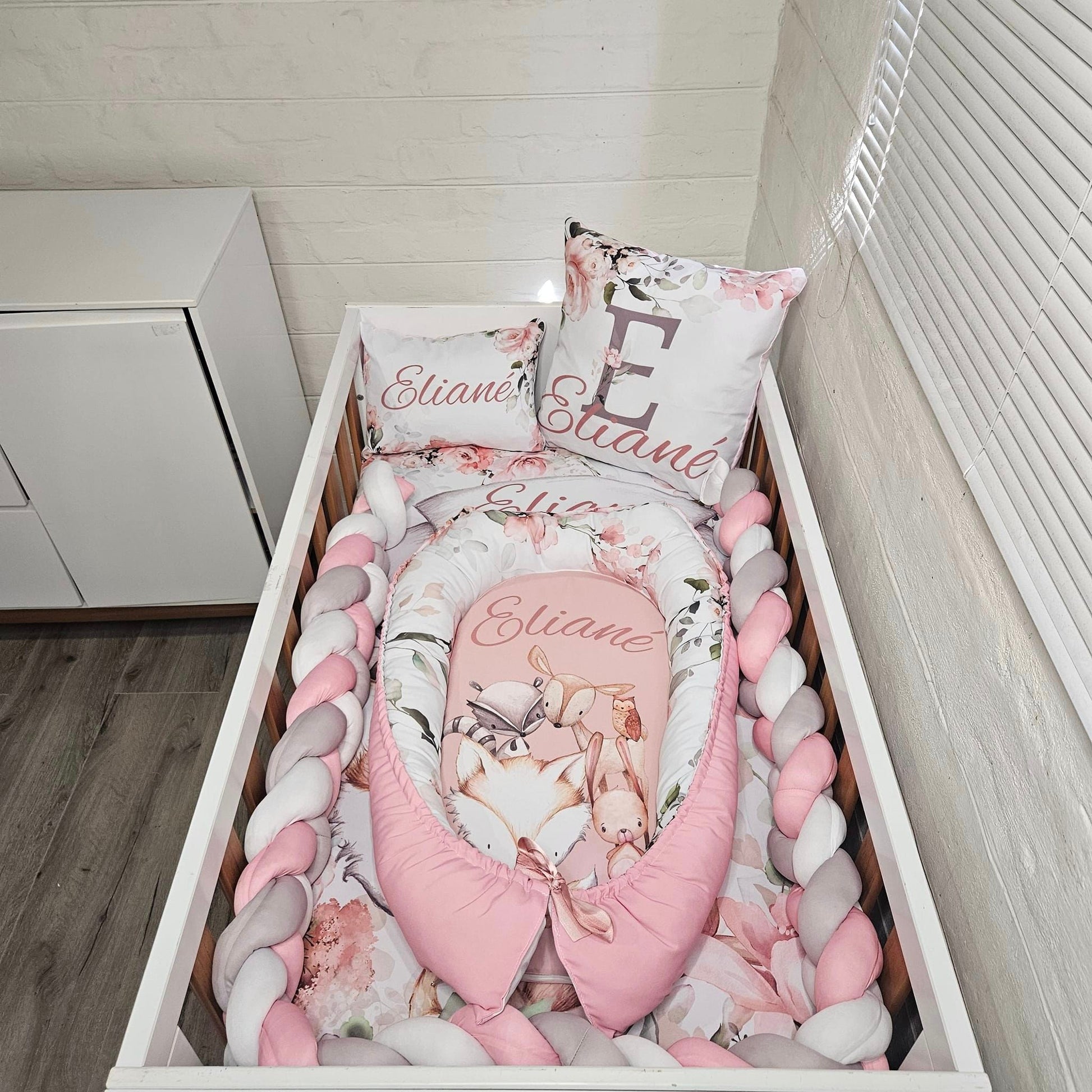 Duvet cover & Inner, or Comforter, Baby Pillow & Inner, Scatter & Inner, Baby Nest, 3 M Bumper and a Fitted sheet to fit cot