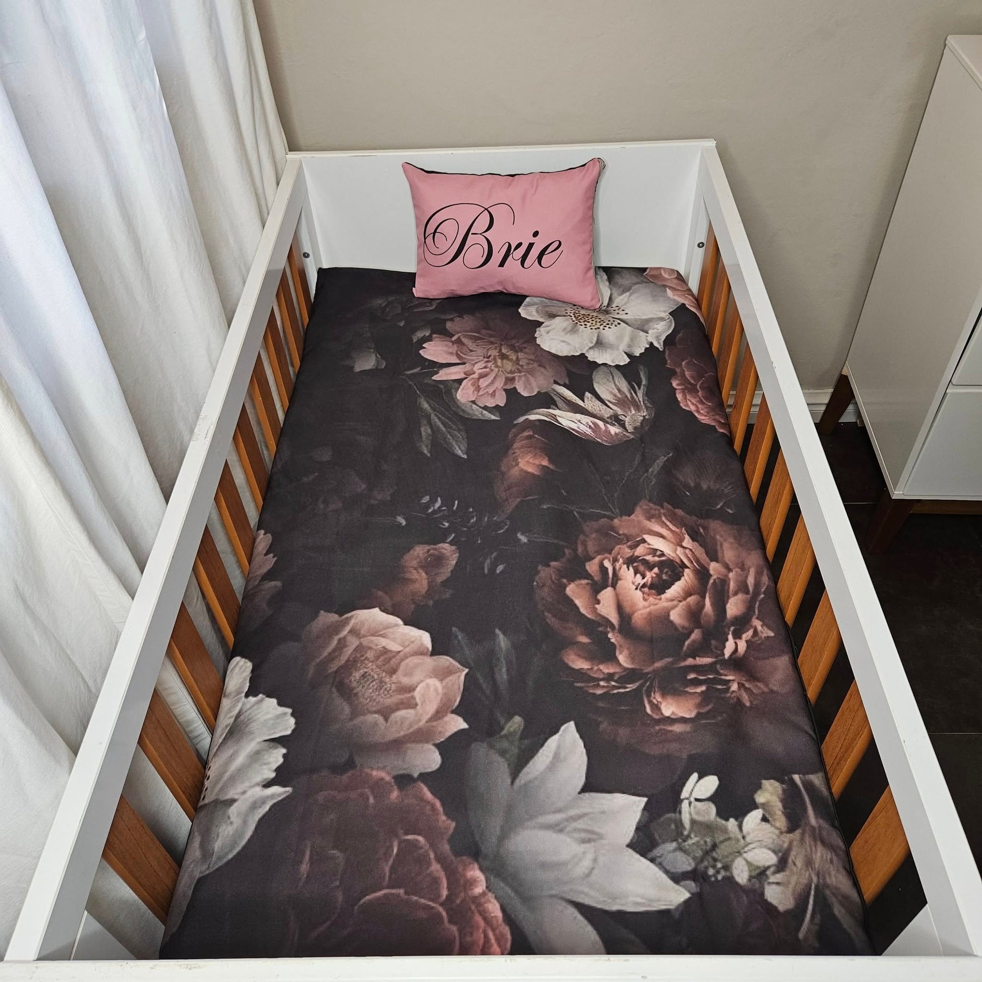 Sophisticated black and pink Floral cot linen