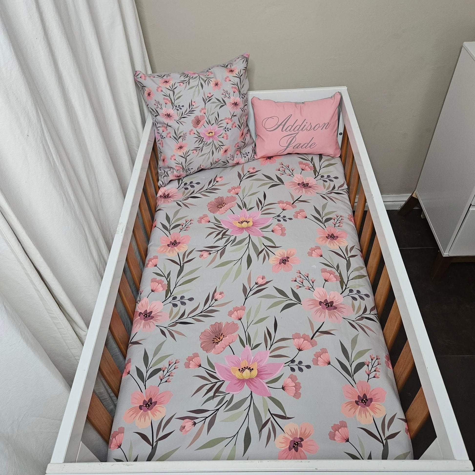 Duvet cover & Inner, or Comforter, Baby Pillow & Inner, Scatter & Inner, 3 M Bumper and a Fitted sheet to fit cot