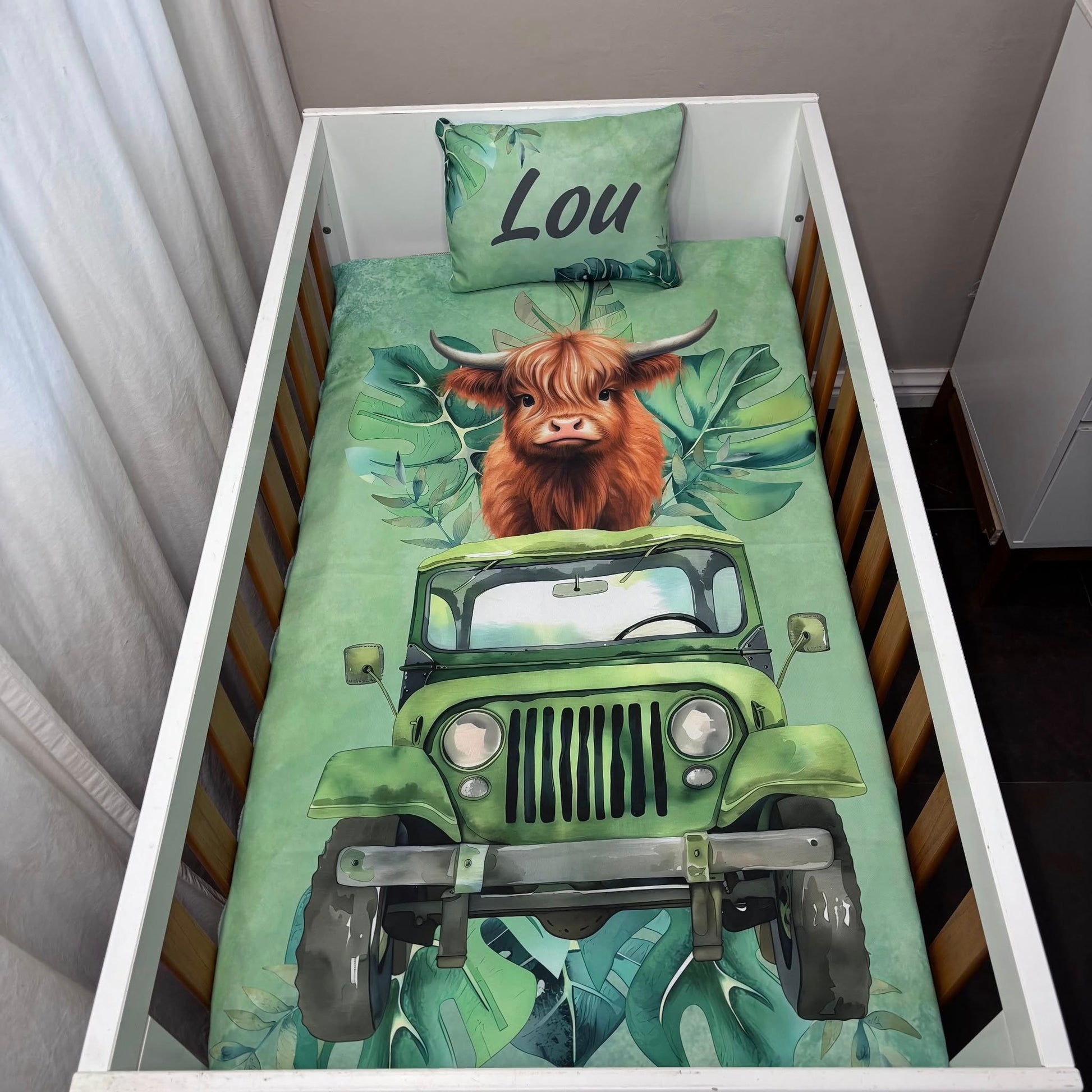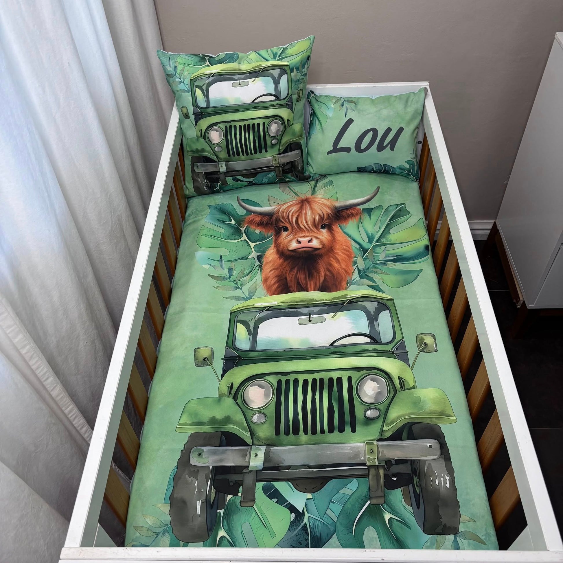 Highland cows is set to be a trend for 2025 with so much variety of ideas, tastes and dreams.Just take this set as an example. Mommy wanted a little bit of everything adventure, jungle and some lively tropical greens. It just shows that unique is beautiful and special!Can't wait to see what this set inspires next!For all your custom Nursery Sets and so much more contact us today!