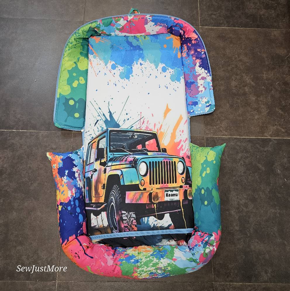 This idea has been in development for months and finally we can show it! A fully custom printed travel baby nest that serves as a bag as well!