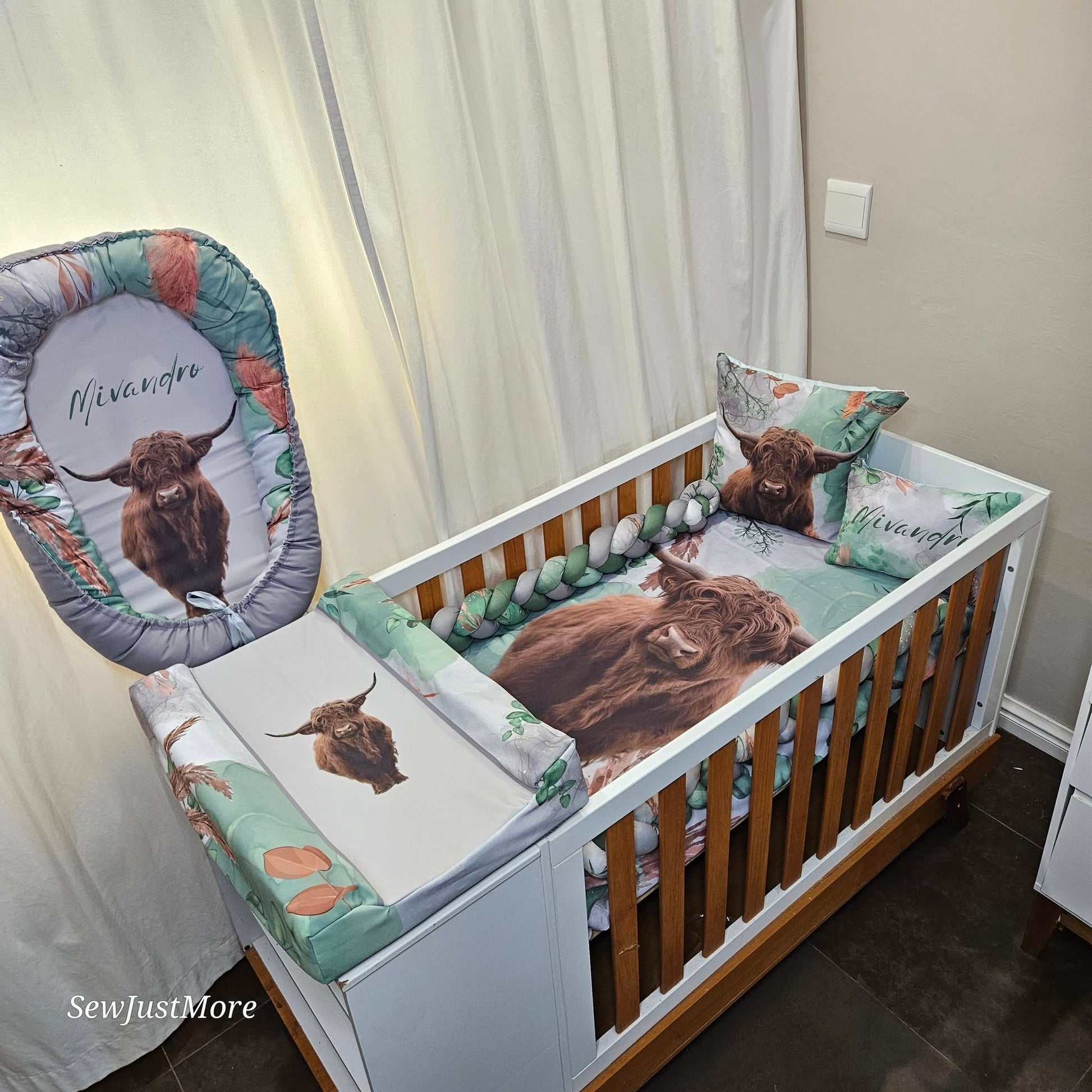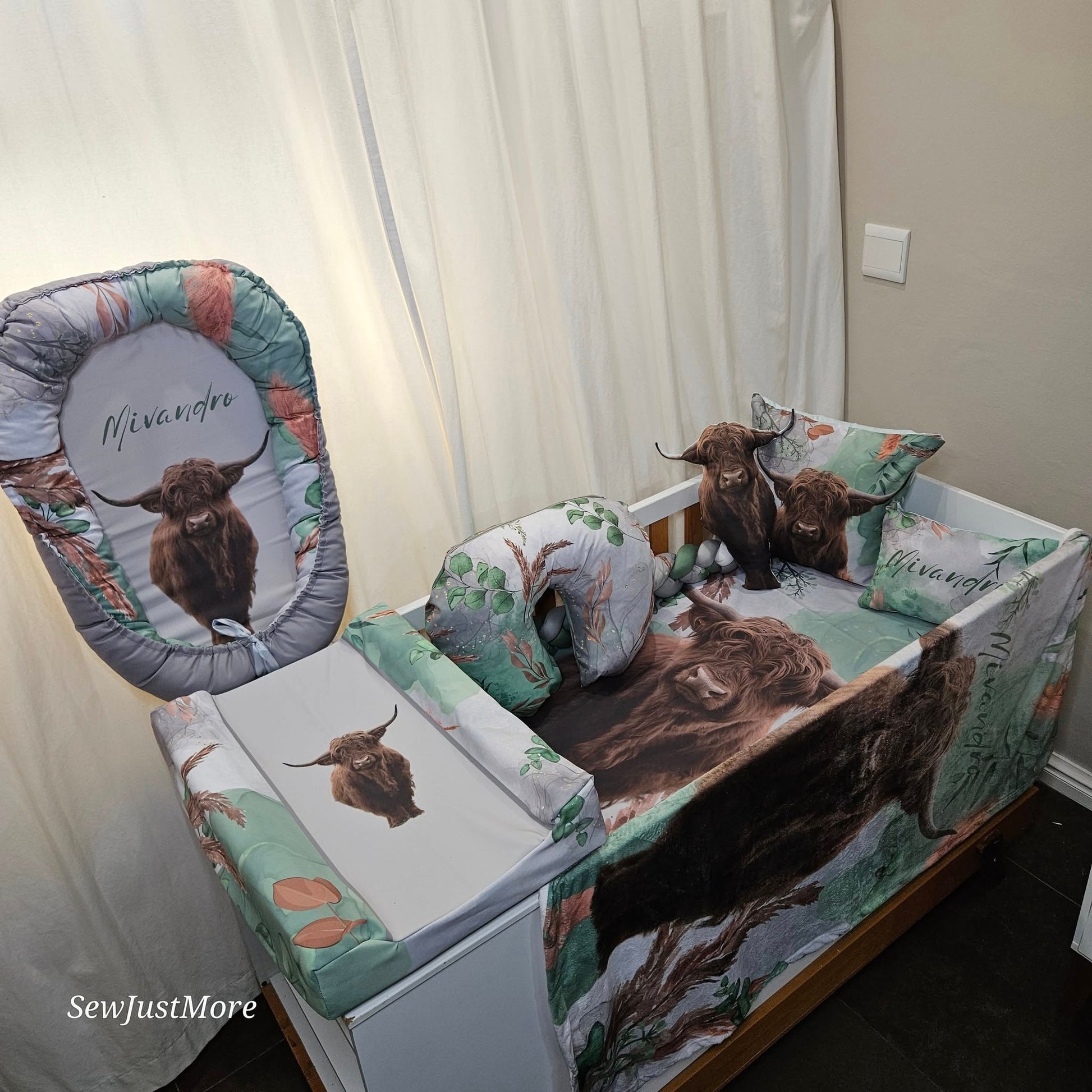 A brand new design with the classical baby safari animals. A new grey background with some beautiful jungle leaves in green and grey. Creating a vibrant and lively set perfect for any nursery.