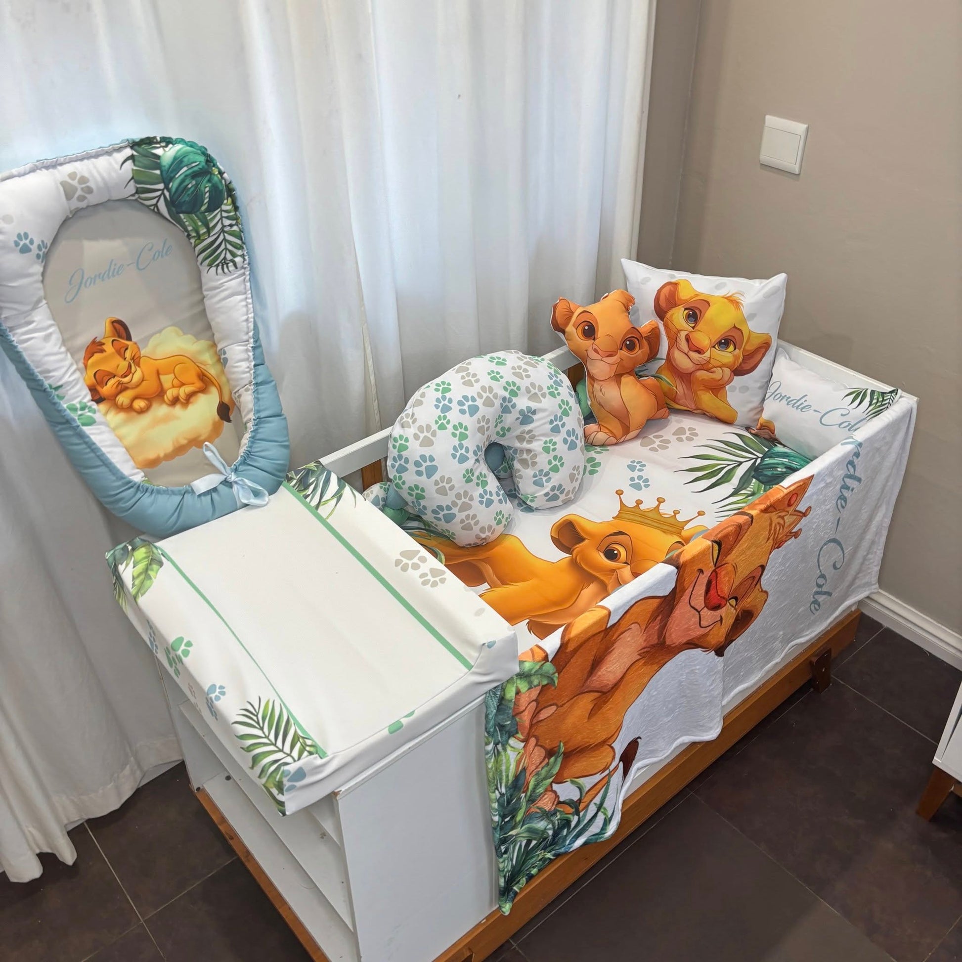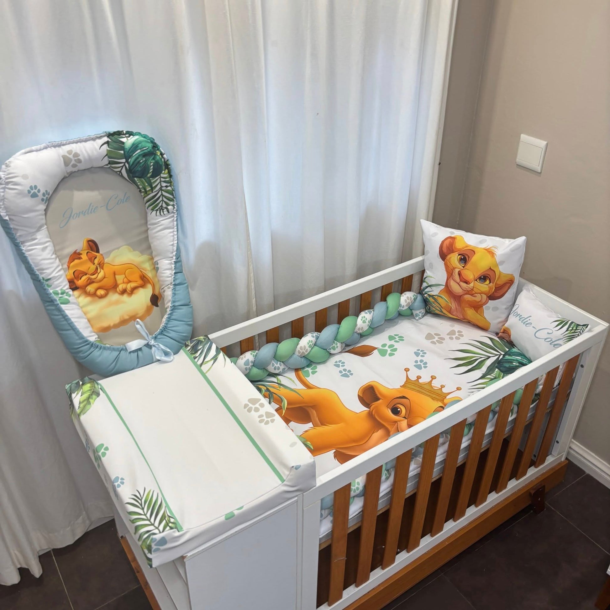 Duvet cover & Inner, or Comforter, Baby Pillow & Inner, Scatter & Inner, Baby nest, Waterproof Changing mat Cover & Inner, 3 M Bumper and a Fitted sheet to fit cot