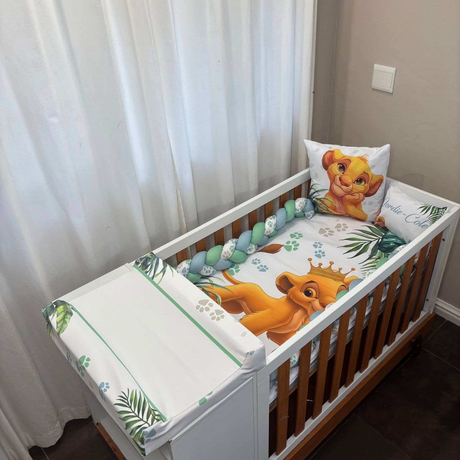 Duvet cover & Inner, or Comforter, Baby Pillow & Inner, Scatter & Inner, Waterproof Changing Mat Cover & Changing Mat Inner, 3 M Bumper and a Fitted sheet to fit cot