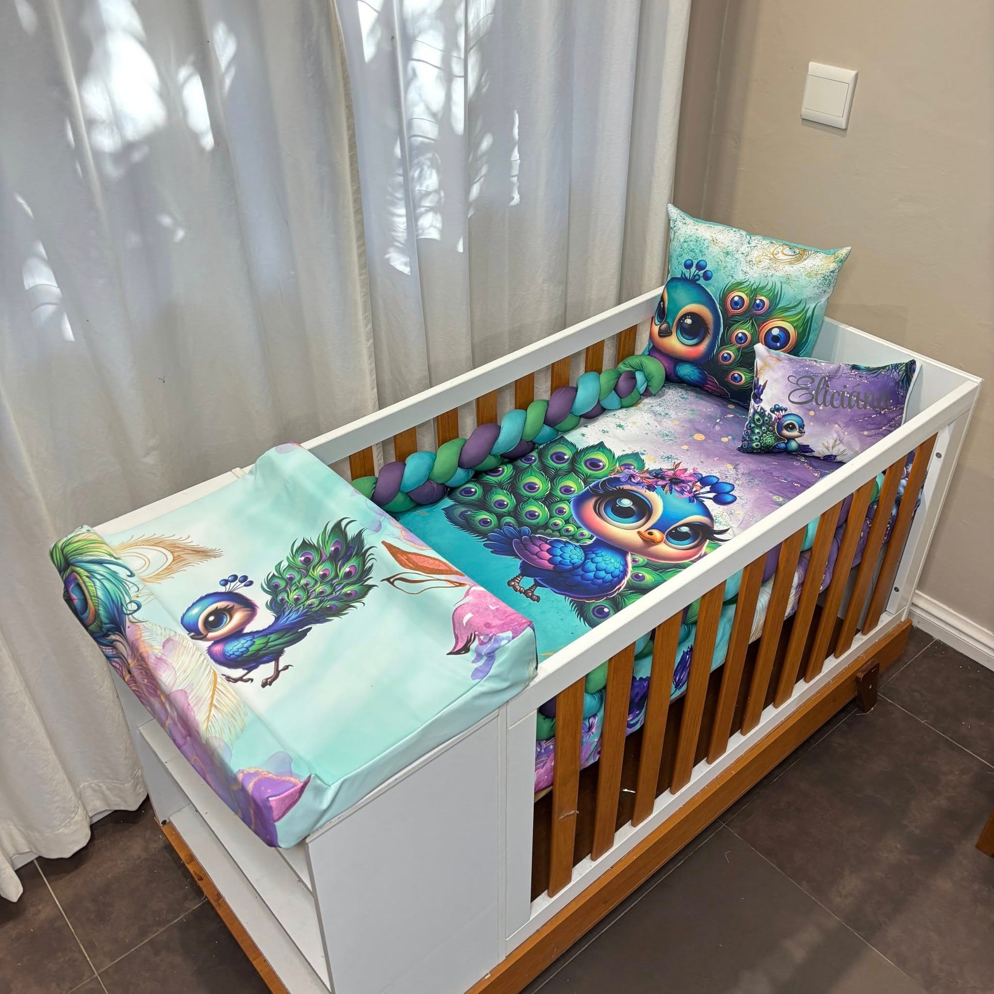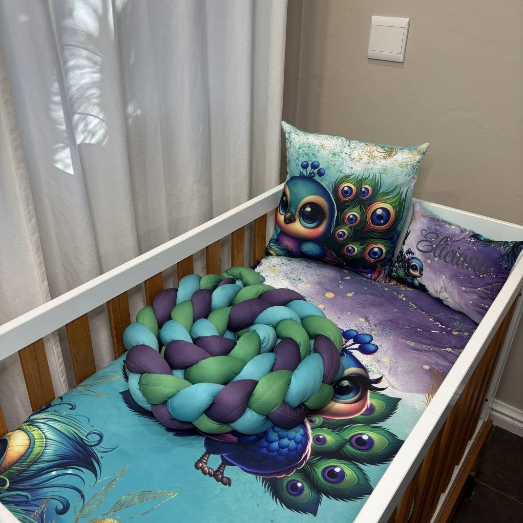 Duvet cover & Inner, or Comforter, Baby Pillow & Inner, Scatter & Inner, Baby nest, Waterproof Changing mat Cover & Inner, 3 M Bumper and a Fitted sheet to fit cot