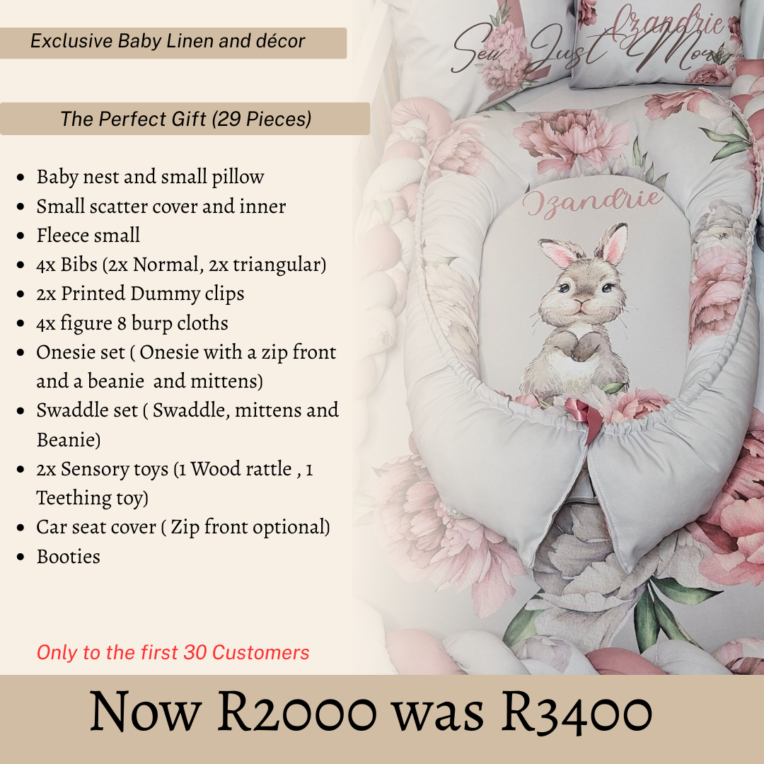 - Swaddle set ( Swaddle, mittens and Beanie)